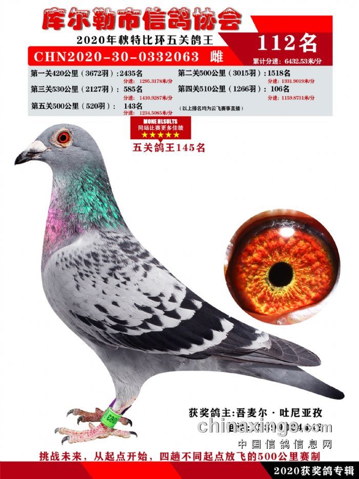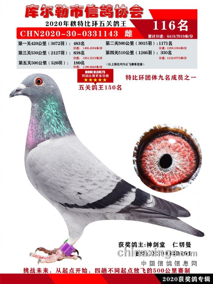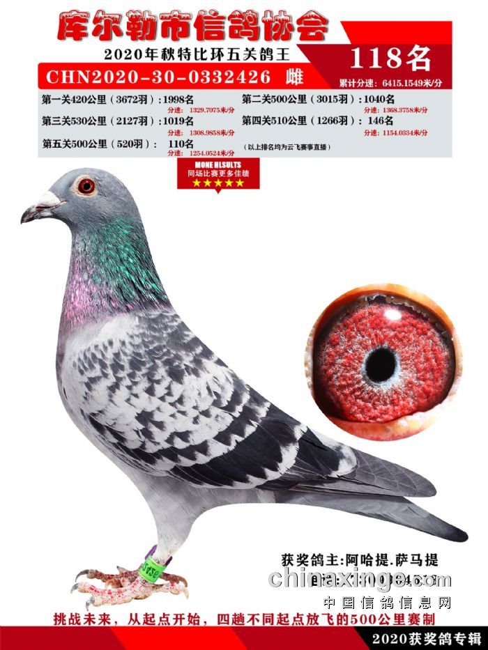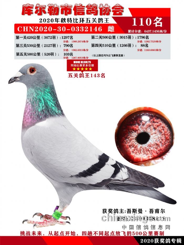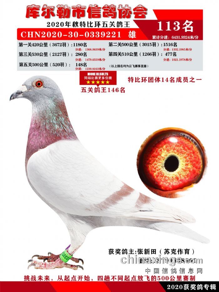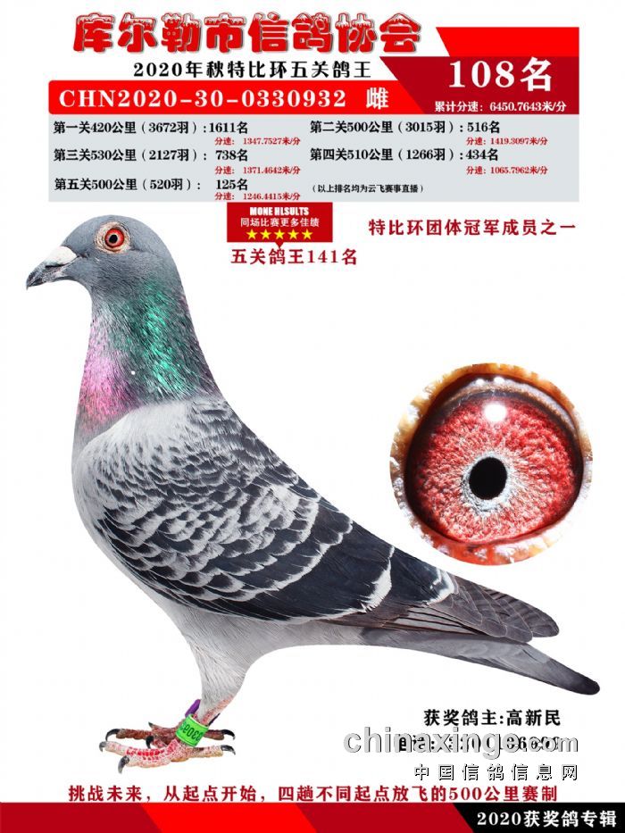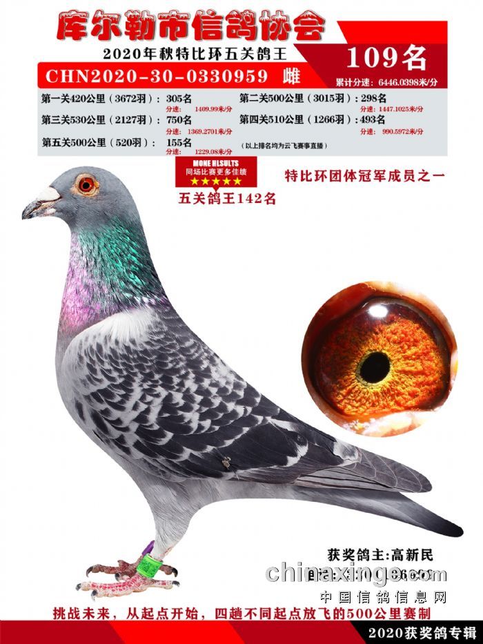 2020年秋五关鸽五、特比、精英获奖鸽照片108-122名