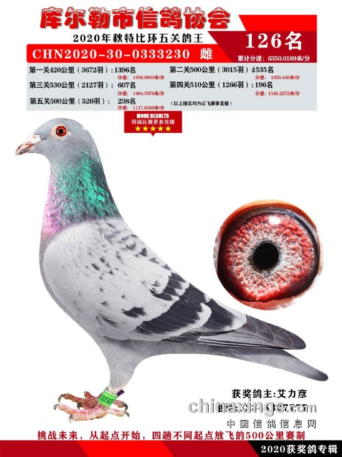 2020年秋五关鸽五、特比、精英获奖鸽照片123-138名