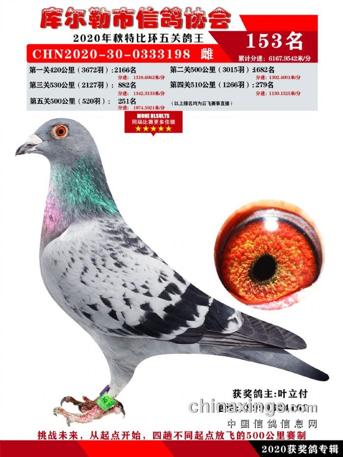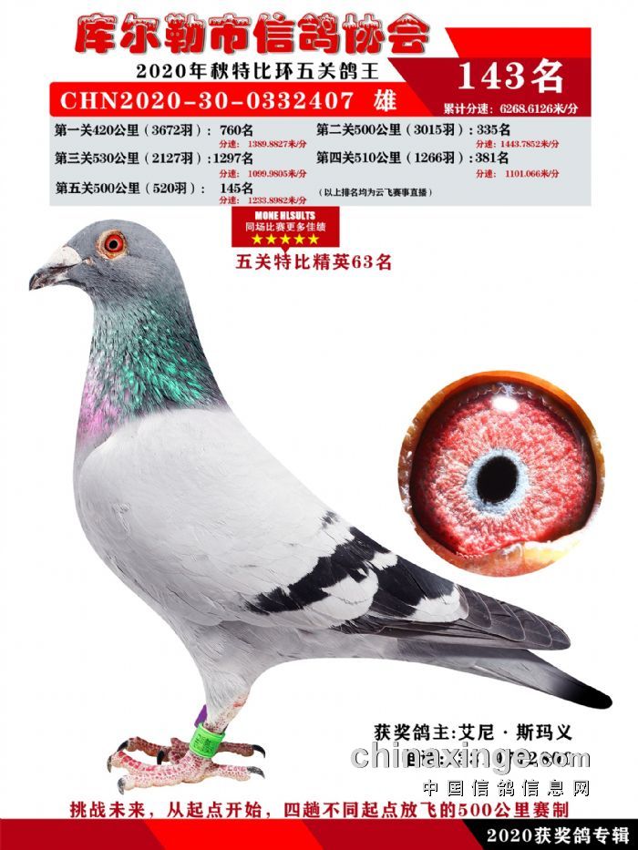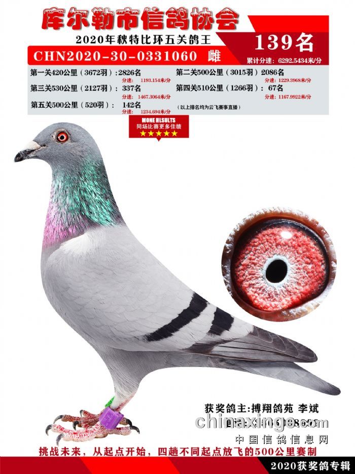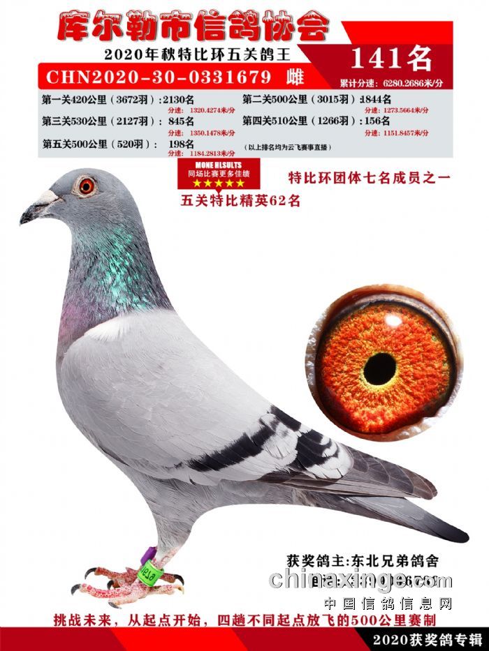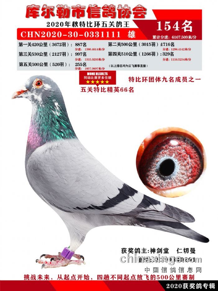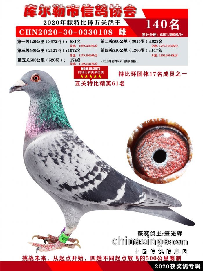 2020年秋五关鸽五、特比、精英获奖鸽照片139-156名