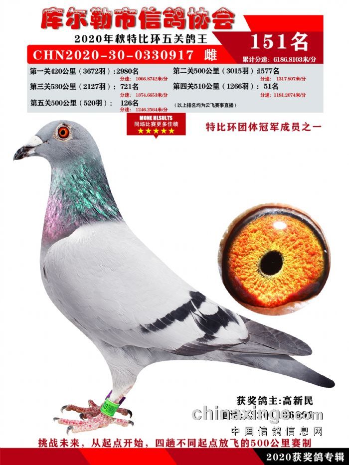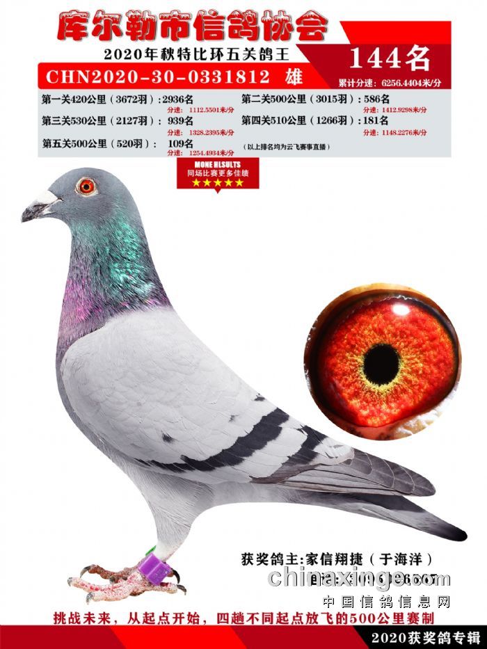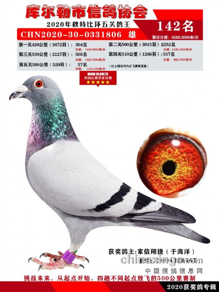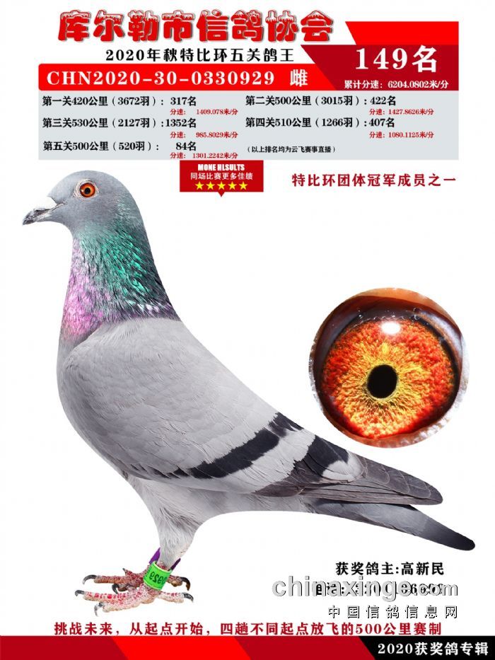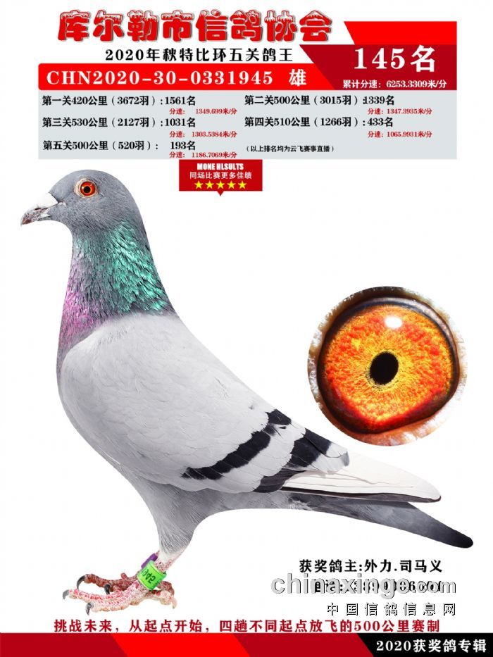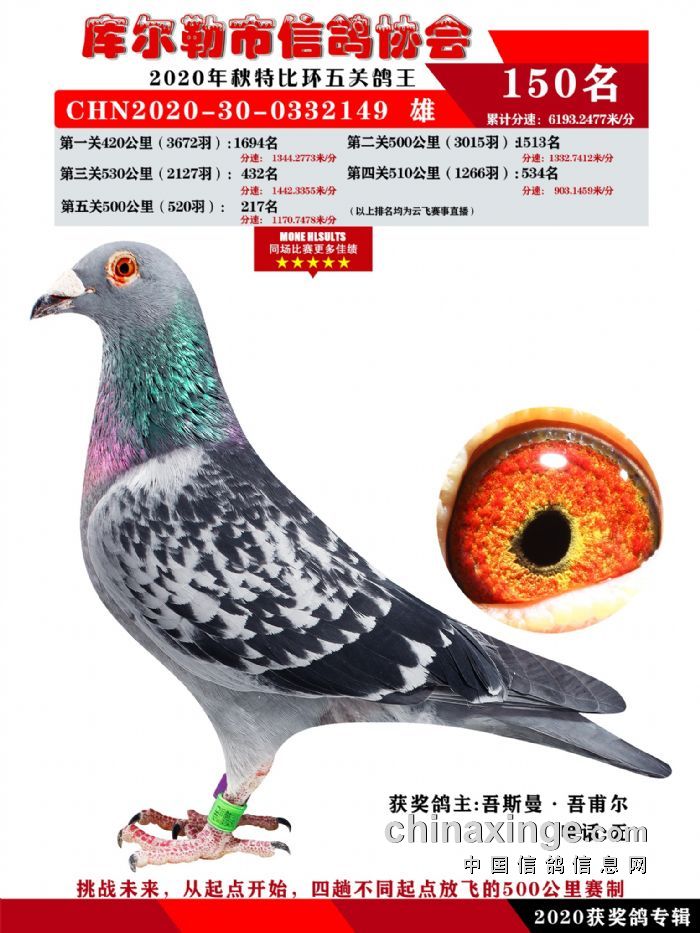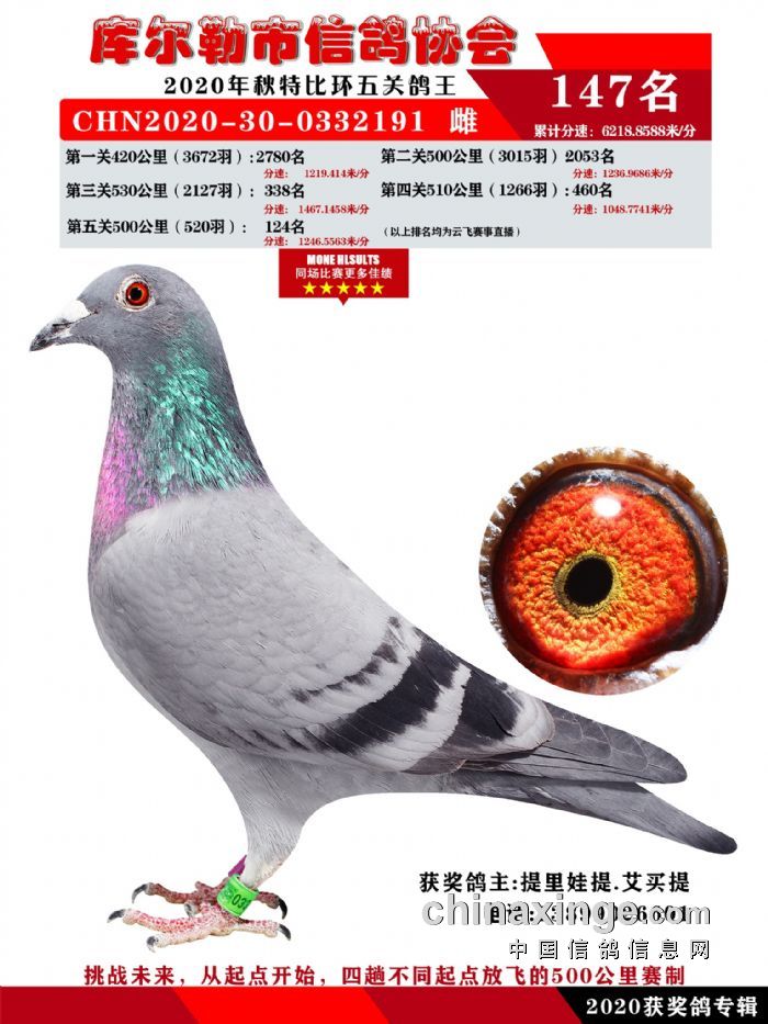2020年秋五关鸽五、特比、精英获奖鸽照片139-156名