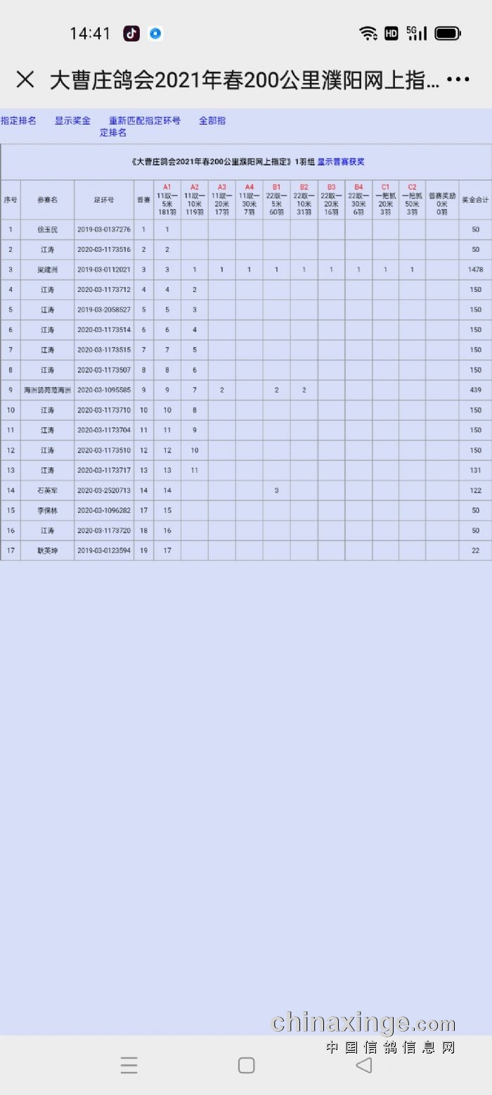 大曹庄鸽会25年秋220、280、340、380、500公里五关鸽王临时成绩