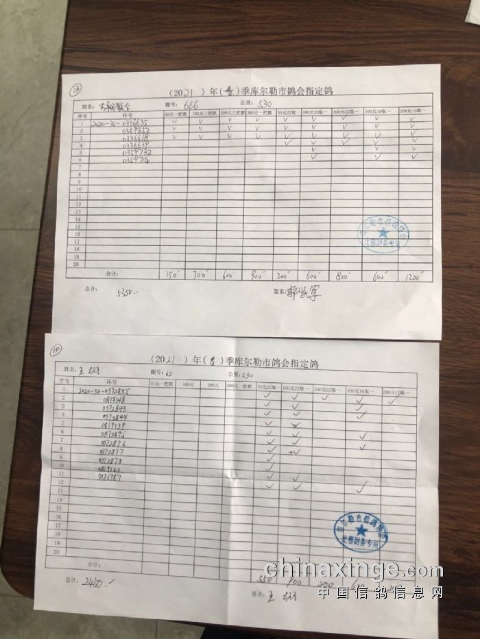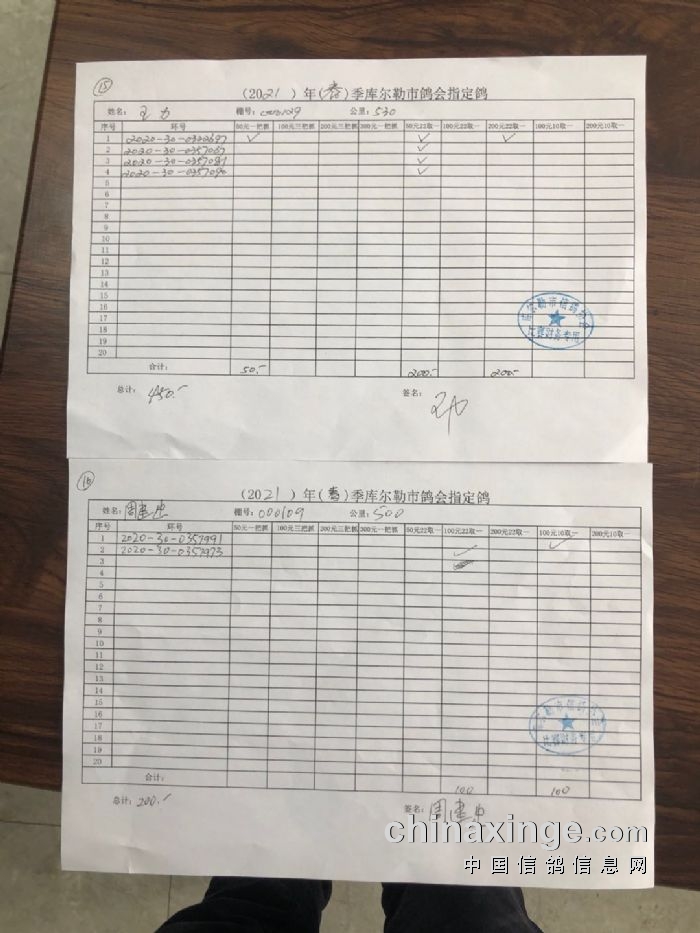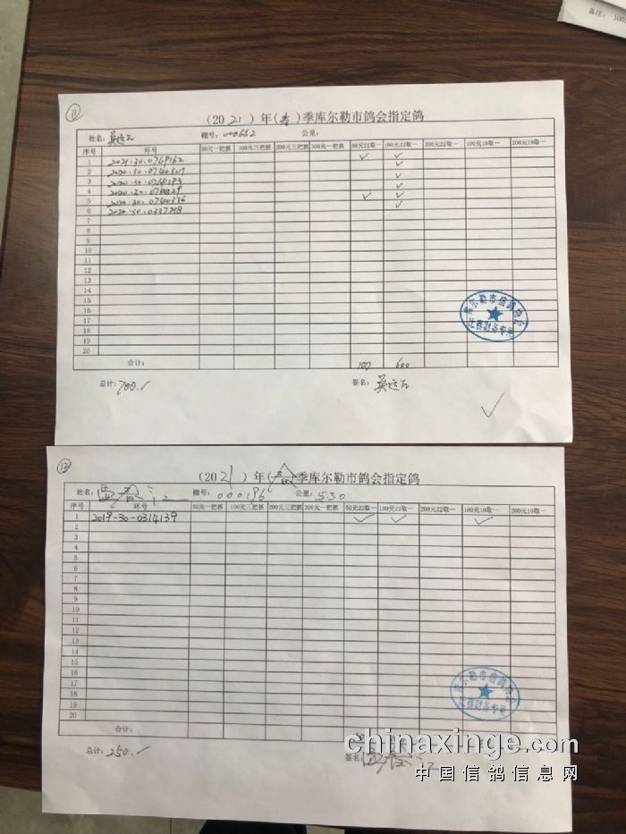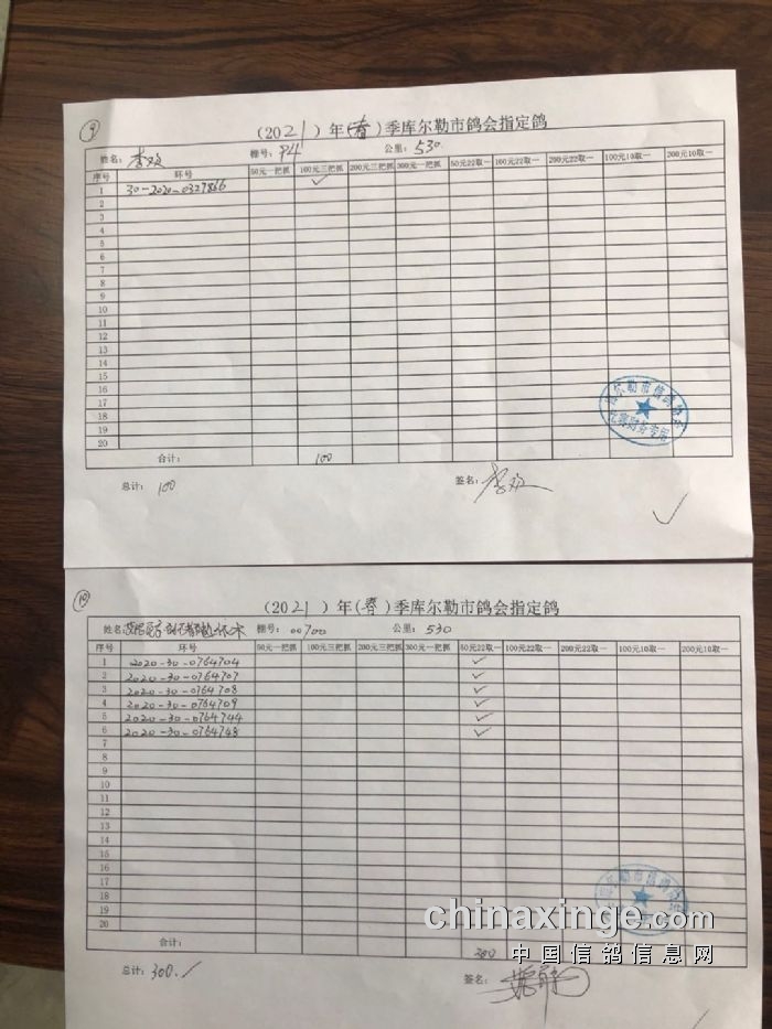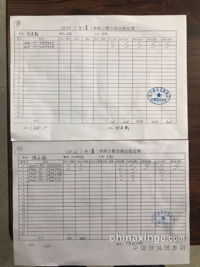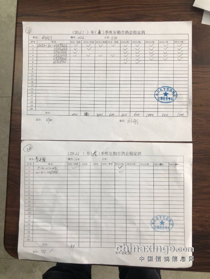 2021年春季530公里指定鸽明细1