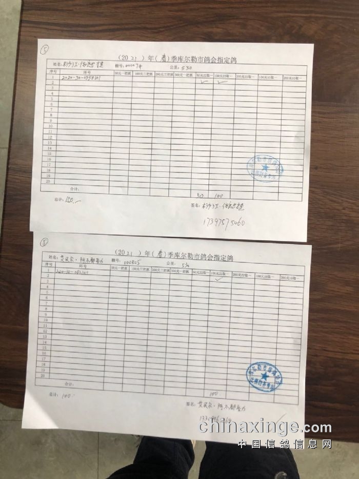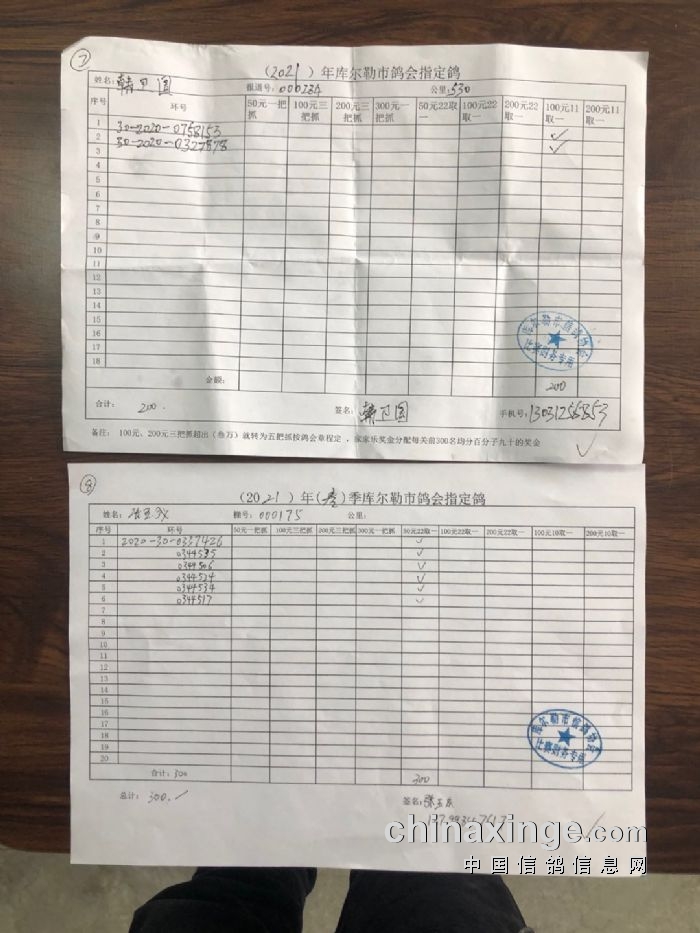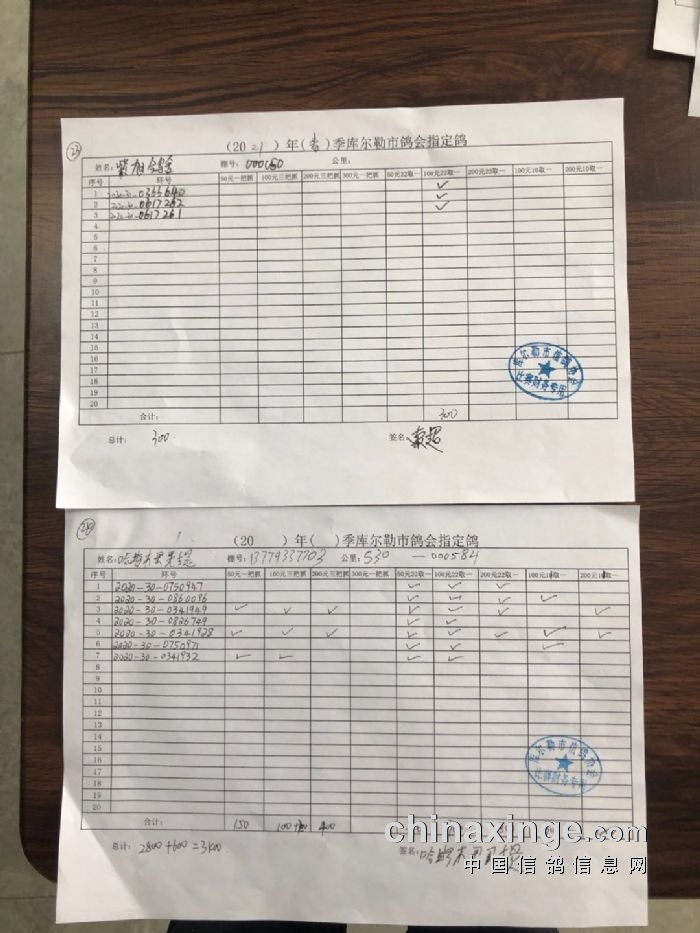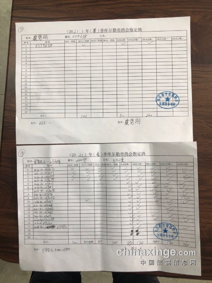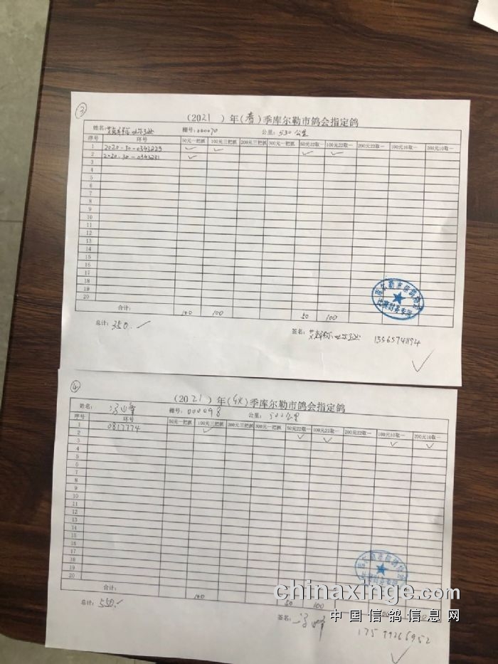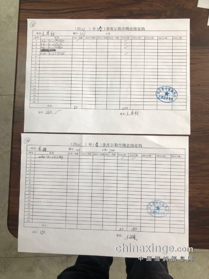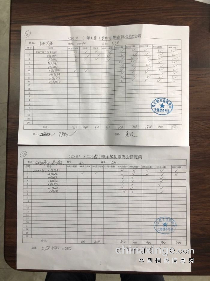 2021年春季530公里指定鸽明细1