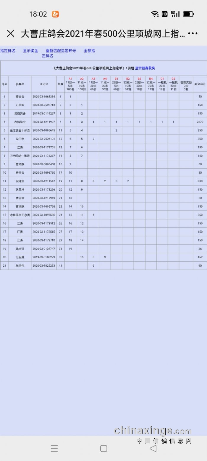 大曹庄鸽会25年秋220、280、340、380、500公里五关鸽王临时成绩
