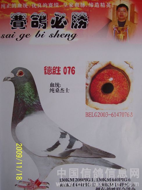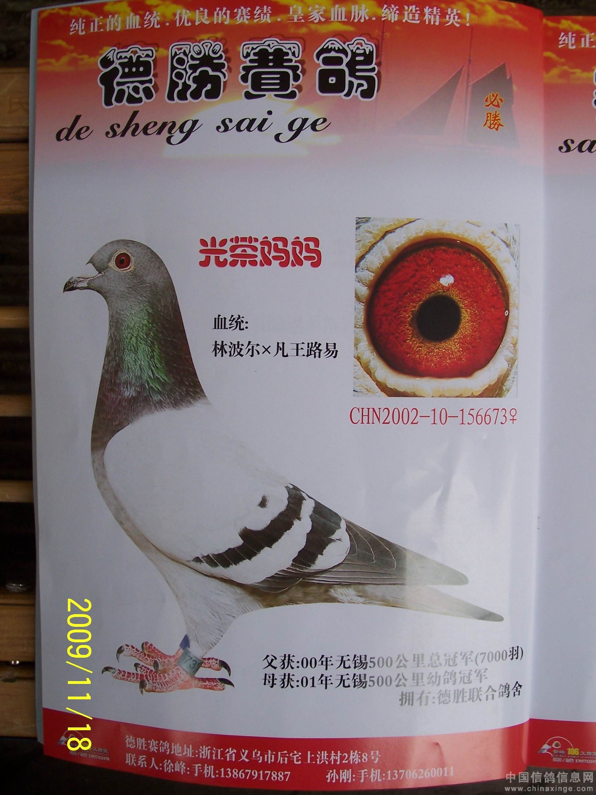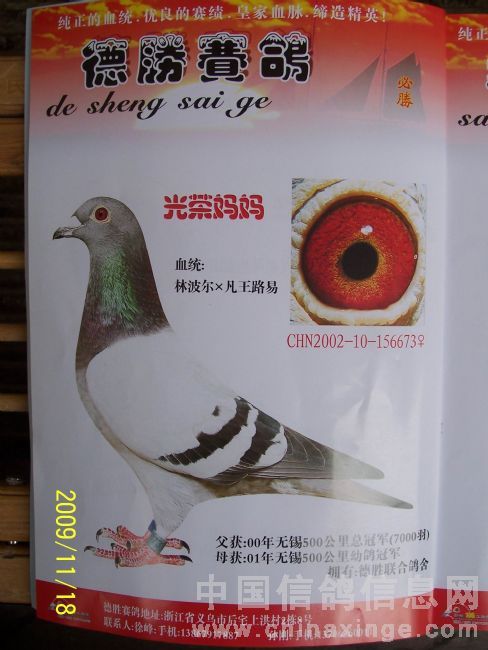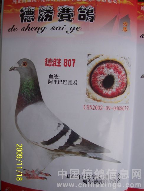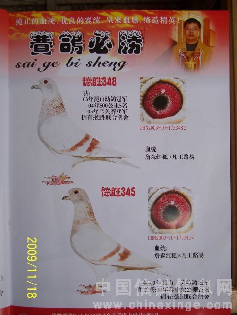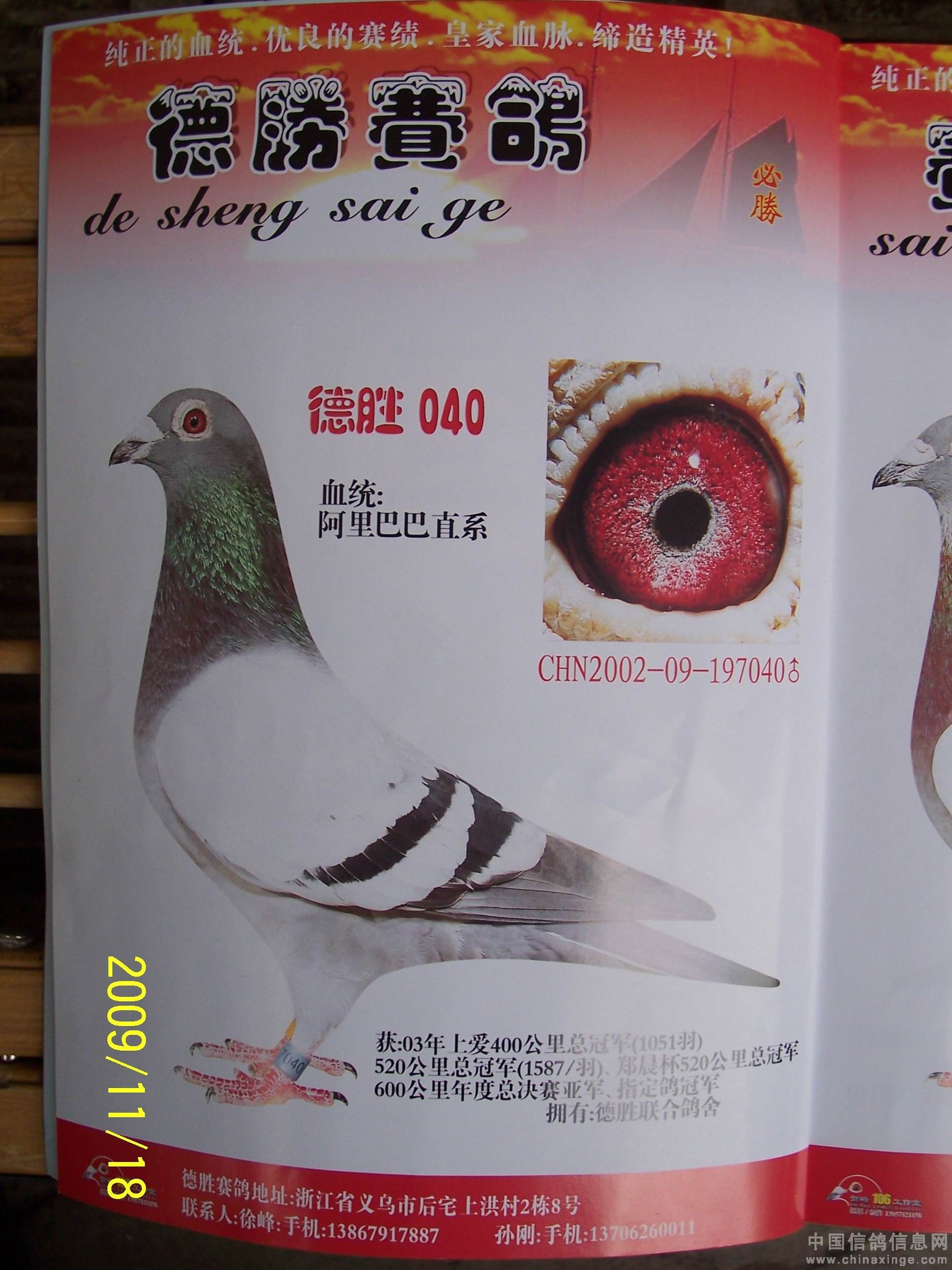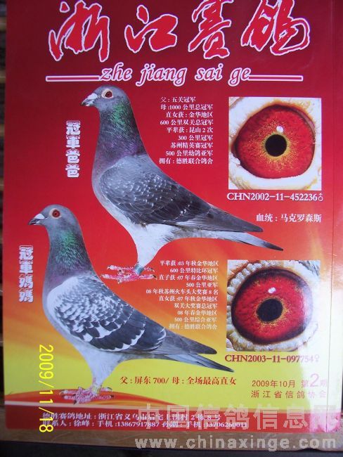 孙刚与徐峰两位鸽友合作建立的“德胜联合鸽舍”,是昆山鸽坛“股海”的一支“潜力股”,近年来,他俩不惜重金,广纳名鸽优种,今年秋季参赛即初见成效,投放幼鸽双关赛仅一羽鸽子,一举夺得了300/500公里幼鸽双关赛总冠军(详见鸽协成绩表,鸽主名为:徐峰)。现将他们于《浙江赛鸽》杂志上最新刊登的一些鸽照,推荐大家欣赏: