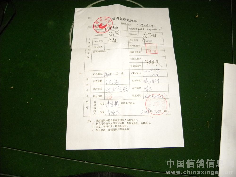常德武陵鸽协房产杯500公里比赛监放单公示