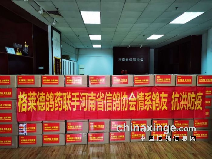 暴雨无情人有情,洪水灾后的防疫工作成了重中之重,河南省信鸽协会此后联系到格莱德鸽药,格莱德鸽药积极响应,为河南鸽友捐赠了一批消杀物资,目前这批物资已安全到达省信鸽协会。
