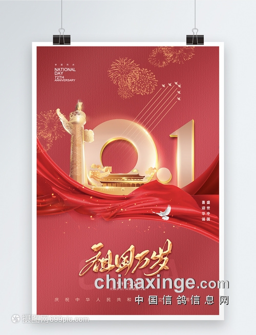 一年一度的国庆节即将来临,西安市信鸽协会祝您节日快乐,鸽会按国家法定节日安排正常放假。请各位鸽友安排好时间。祝各位鸽友节日快乐。