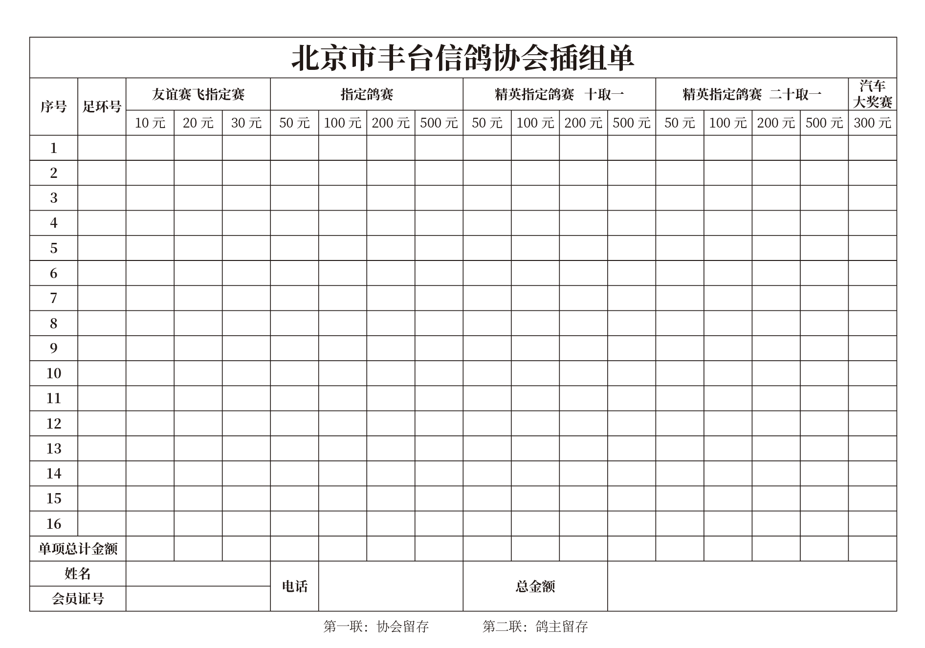 (三)十进一精英指定鸽赛: