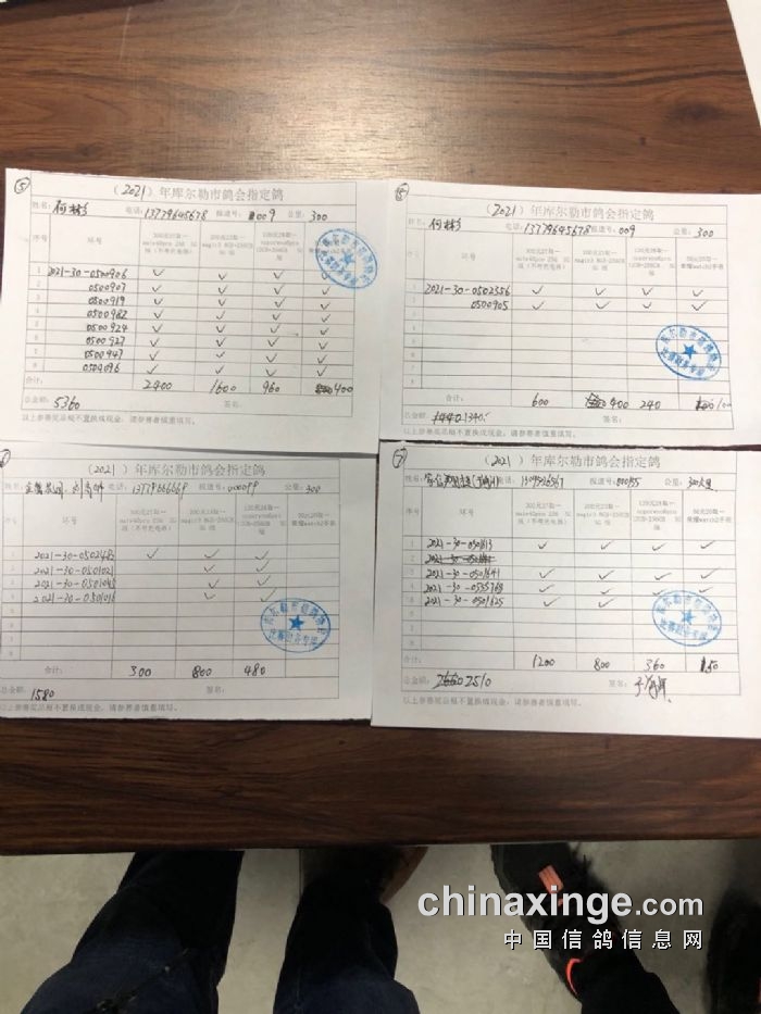 2021年秋300公里指定鸽(手机)明细