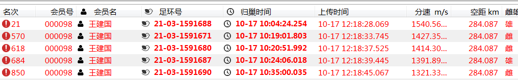 以下鸽友上传超时取消其成绩,再次提醒进入关赛上传时间为30分钟