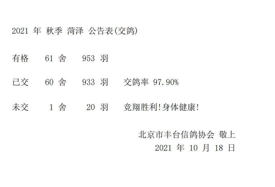 933羽,第二关比赛放飞地为山东菏泽,预祝参赛鸽友取得好成