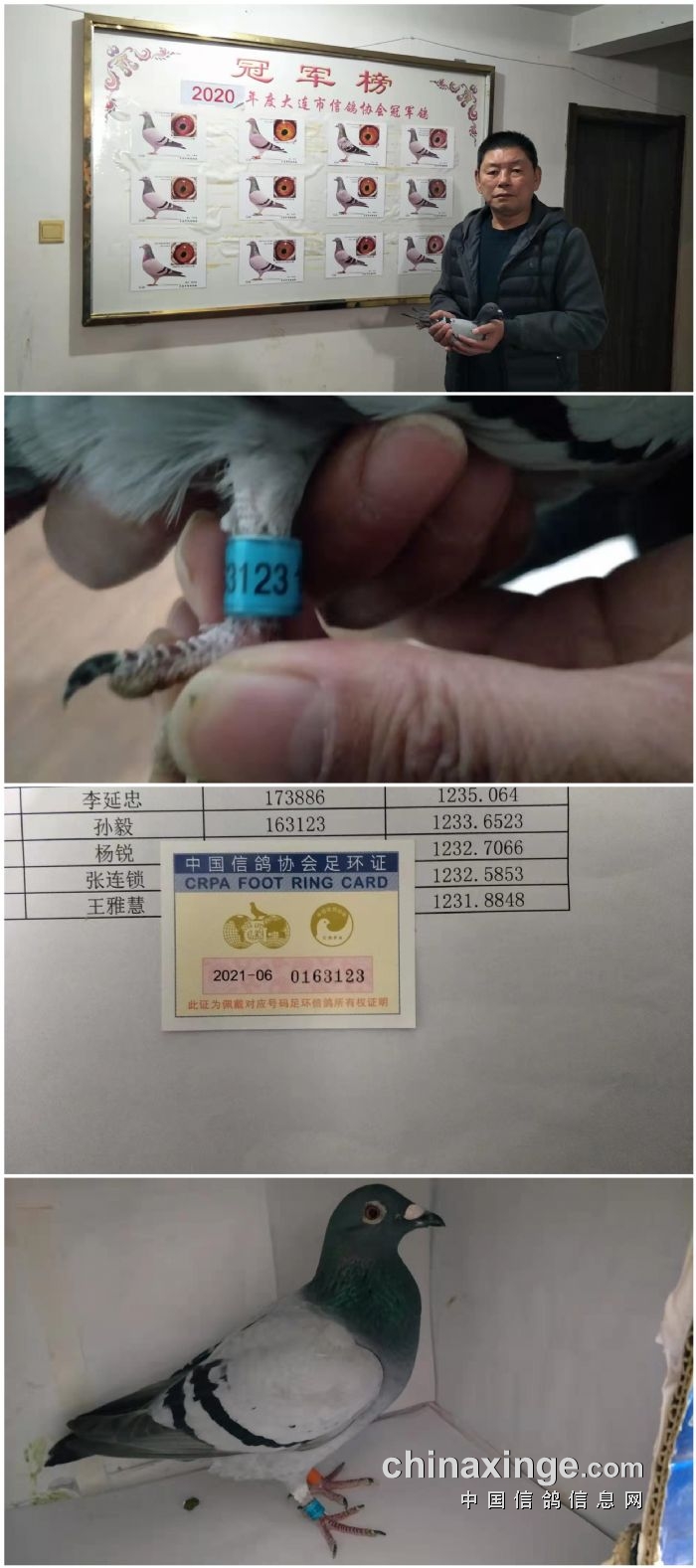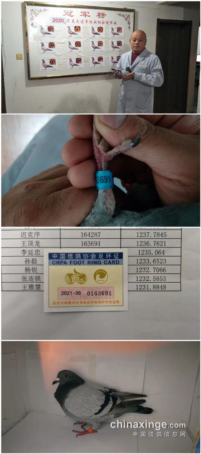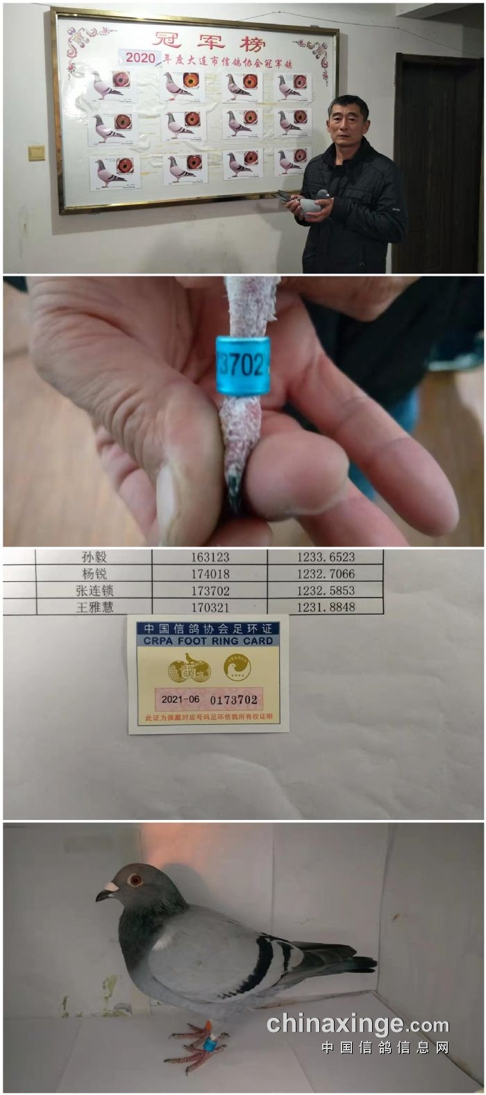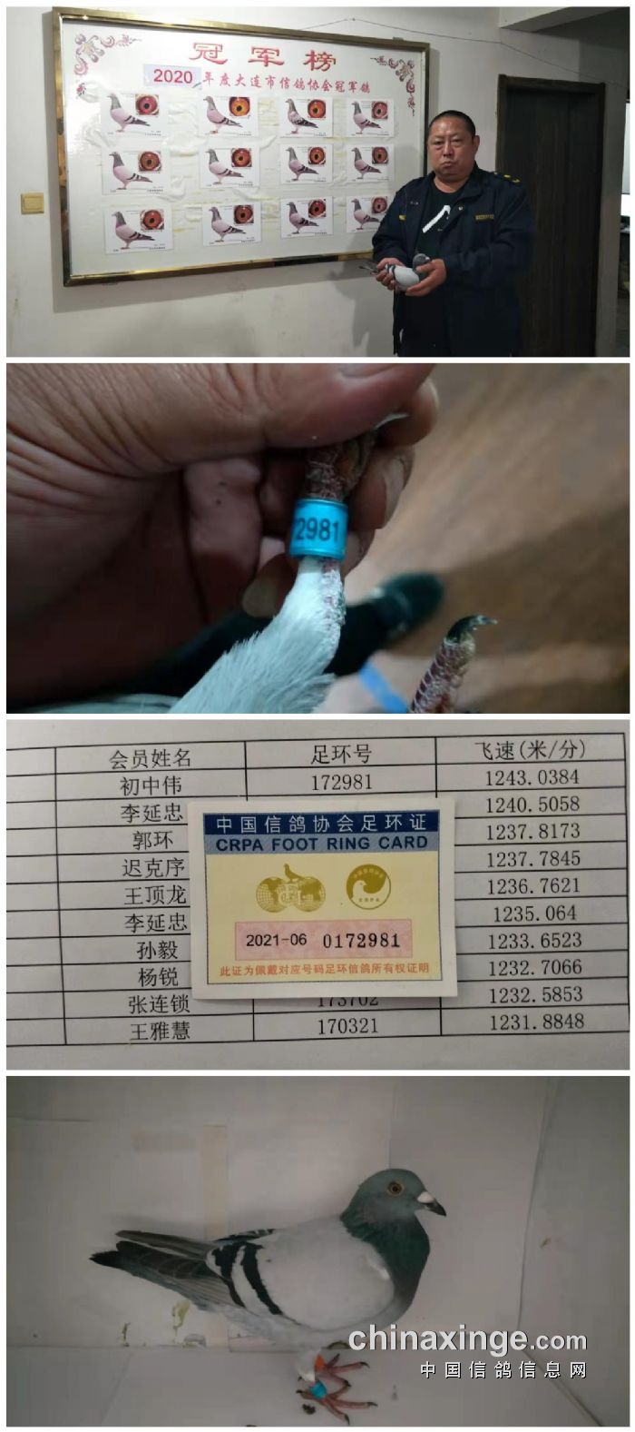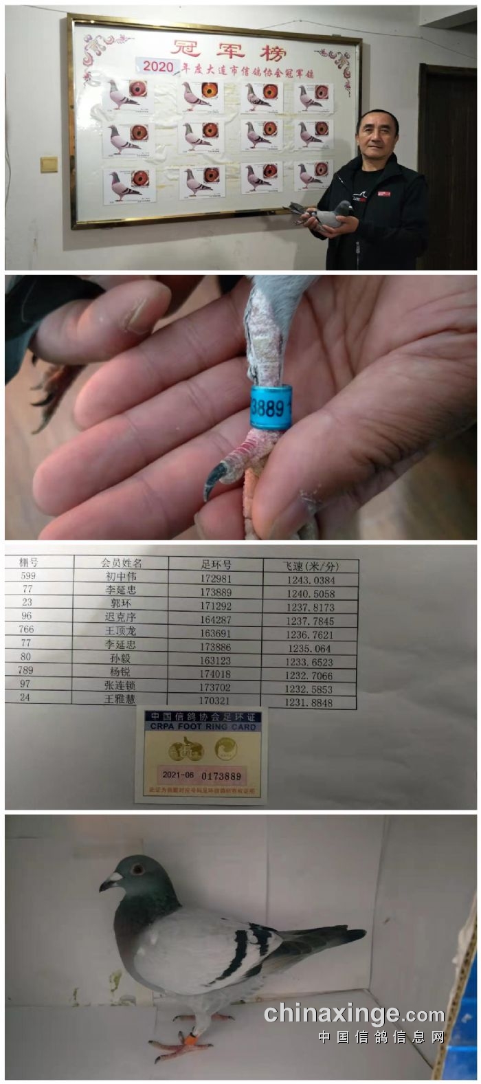 冠军 棚号:599 初中伟 21-06-0172981 雌 砂 灰 飞速(米/分):1243.0384