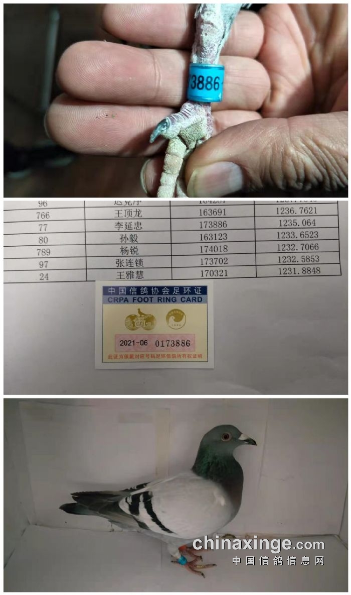 季军 棚号:23 郭环 21-06-0171292 雄 黄 灰 飞速(米/分):1237.8173