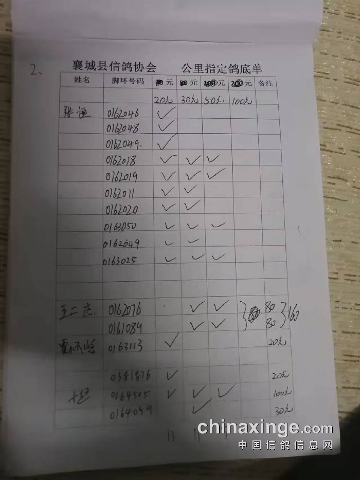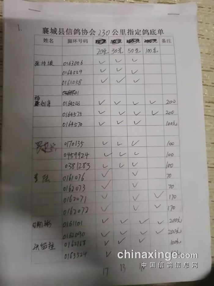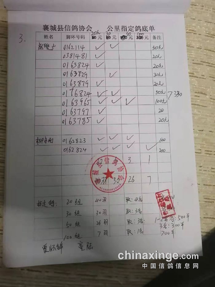 襄城信鸽协会25年秋季第三关510公里湖南南县比赛集鸽清单
