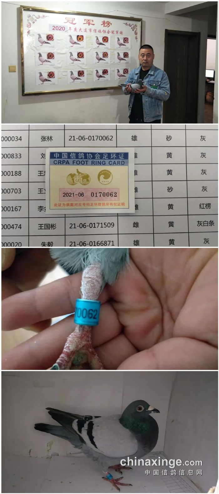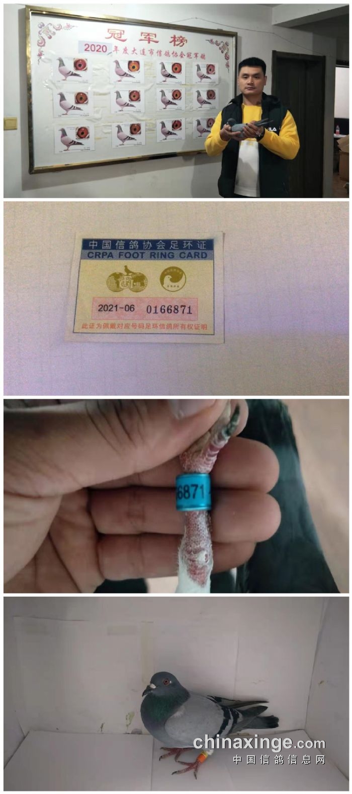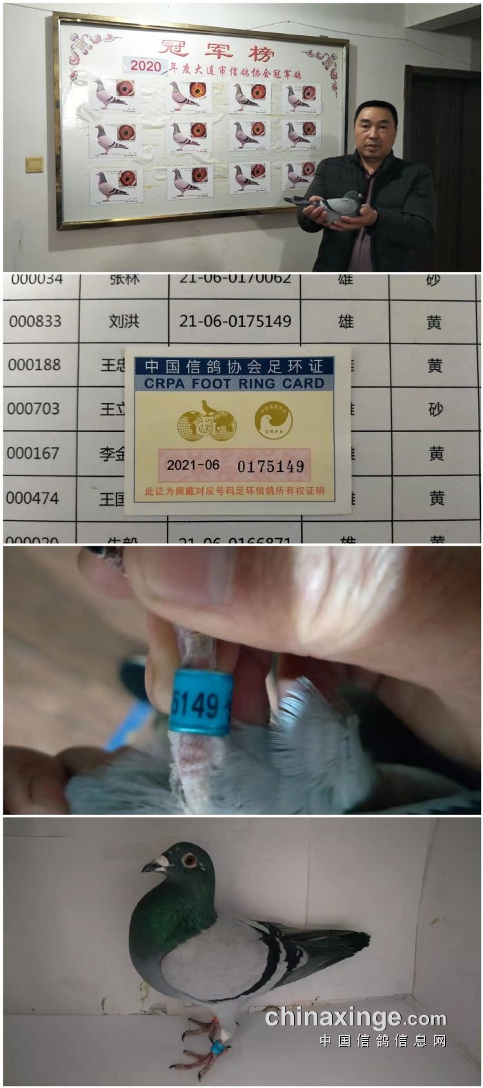 冠军 棚号:000749 郑培国 21-06-0169663 雌 黄 雨点 飞速(米/分):1204.9146