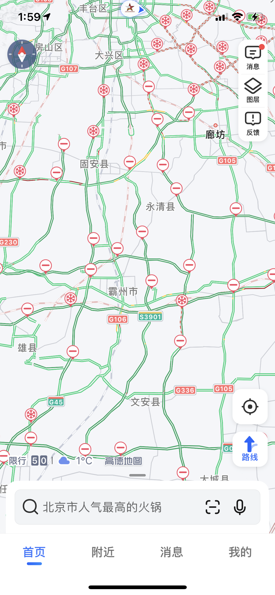 尊敬的广大鸽友:11.7日丰台鸽会百元特比环集鸽完毕后放飞车行驶到大广高速北京至固安段时发生严重拥堵,截止到晚十时三十分走出拥堵路段,但此时高速因雨雪天气导致路面结冰全线封路,所有车辆驶下高速,行驶至106国道。因国道车辆骤多加上道路结冰,截至发稿时车辆已行驶到任丘。如若11.8日8点30分前放飞车未开到放飞地则押笼一天。