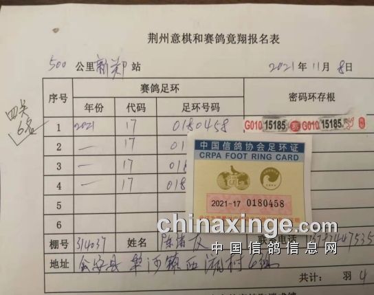 意棋和赛鸽2021年秋季特比环四关双关综合排名第六名