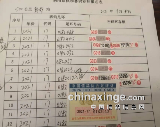 2017年11月26日480公里新郑站年度王中王比赛集鸽清单