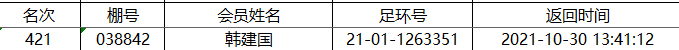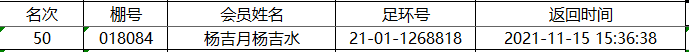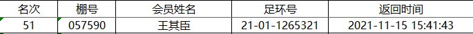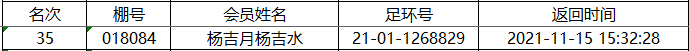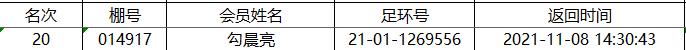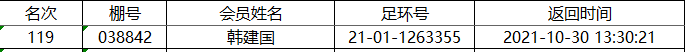 丰台鸽会2021年100特比四关赛裁判入户等鸽资料