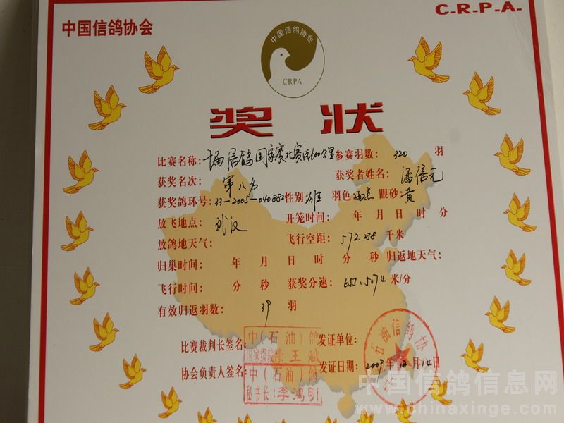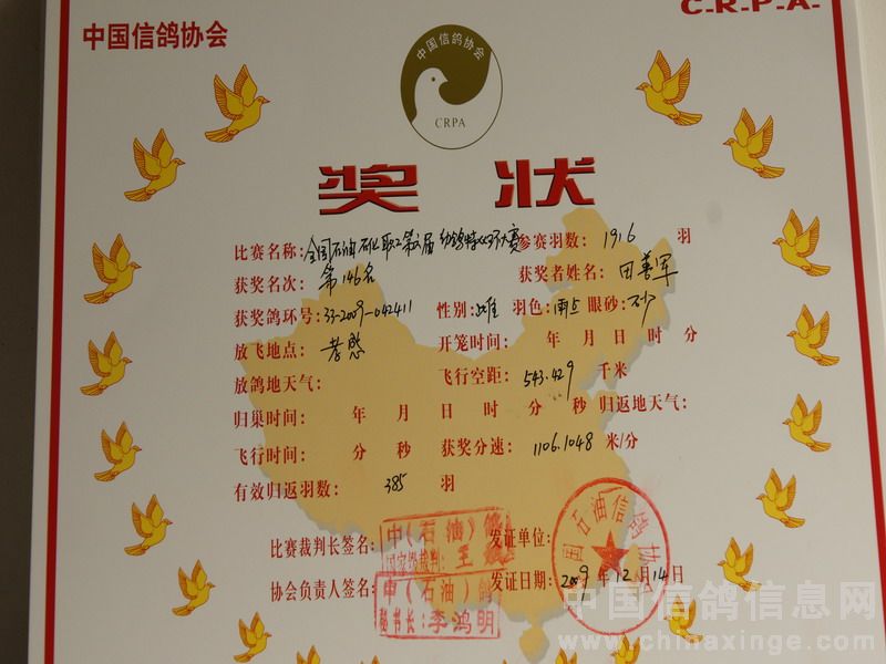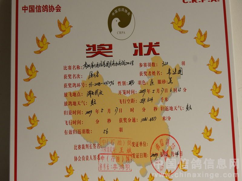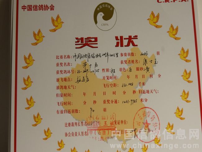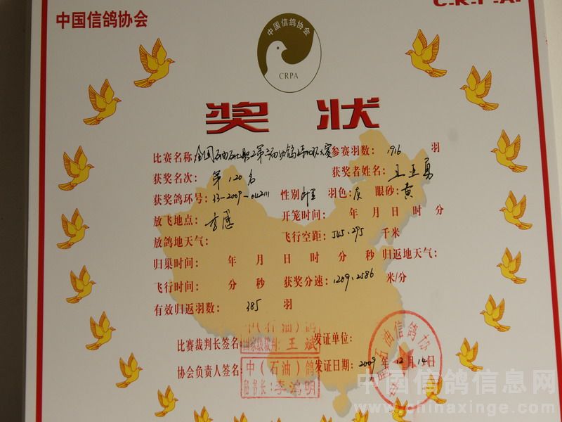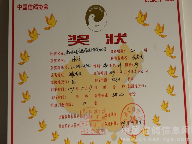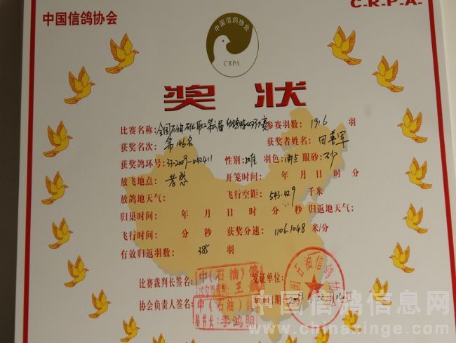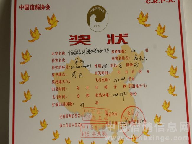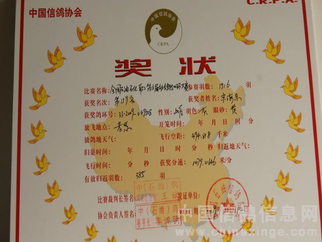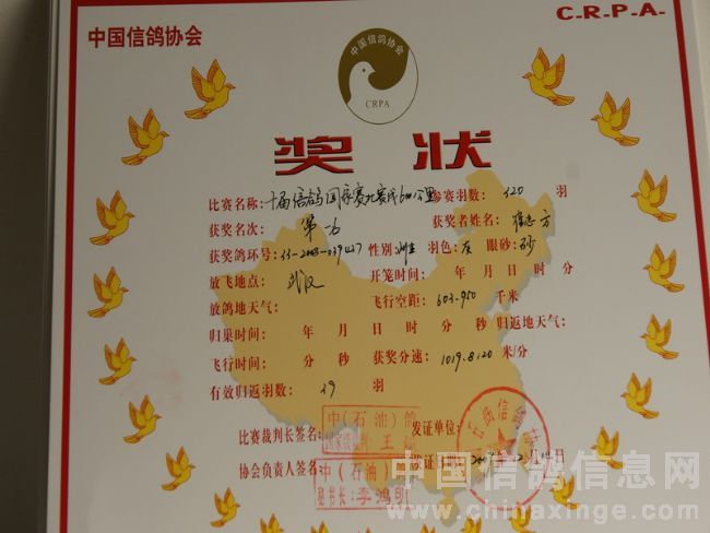 2020年秋500公里特比环大奖赛获奖鸽欣赏(部分)