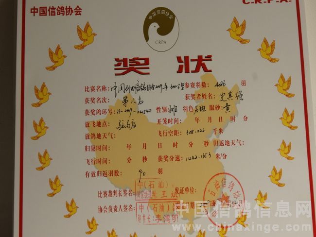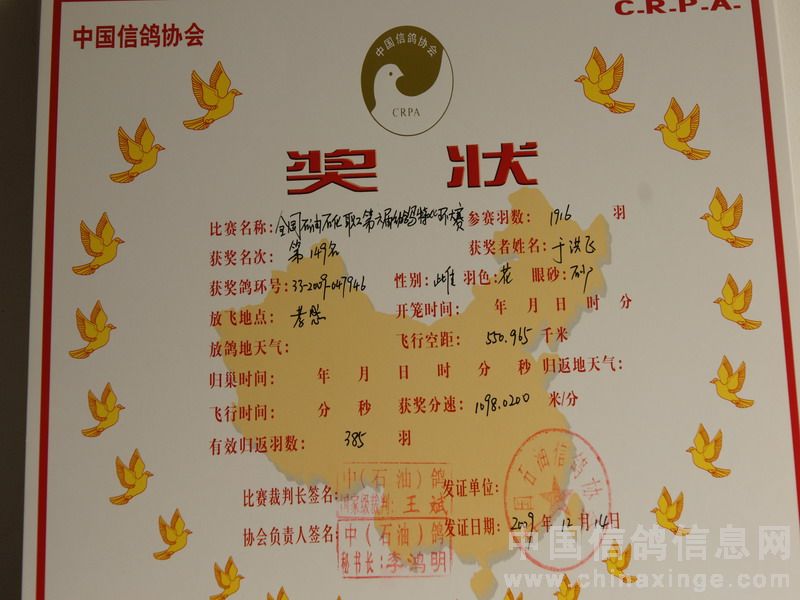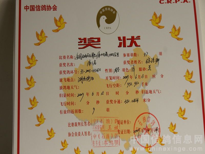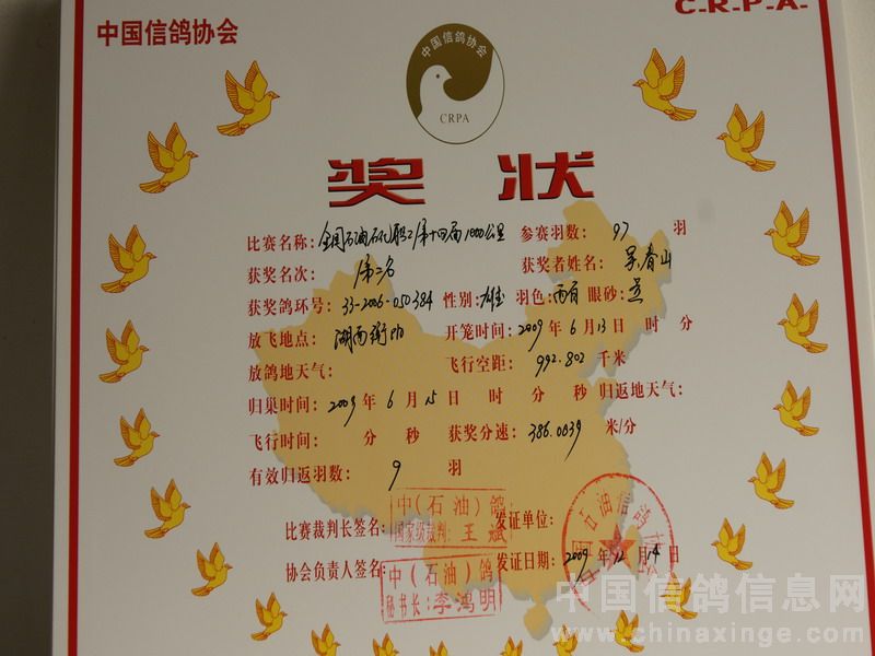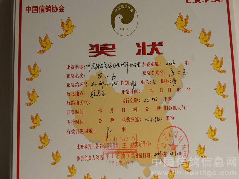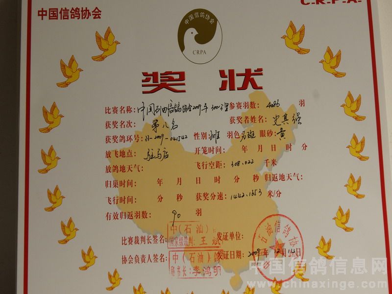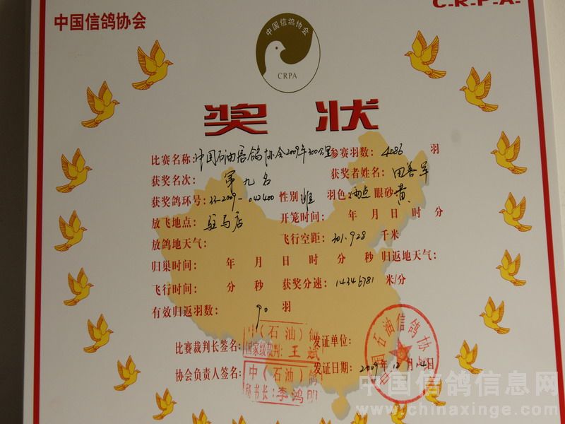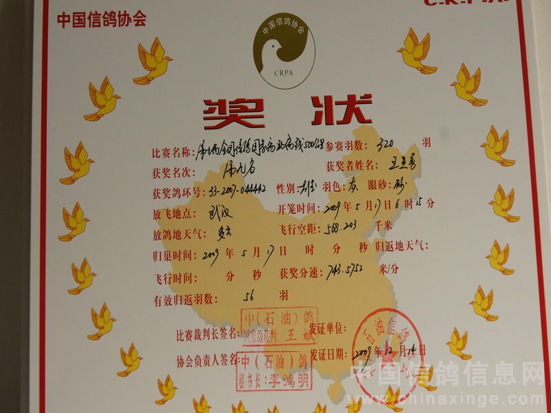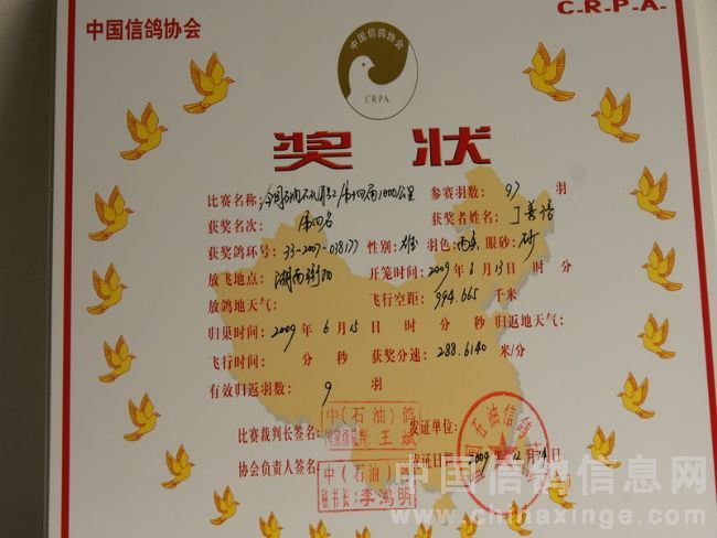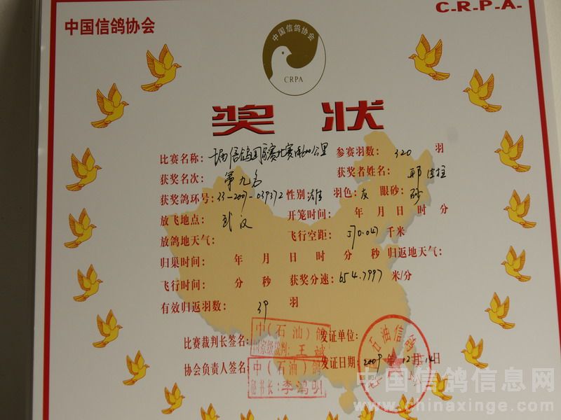 2020年秋500公里特比环大奖赛获奖鸽欣赏(部分)