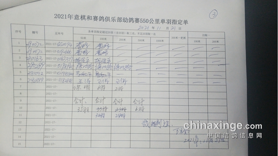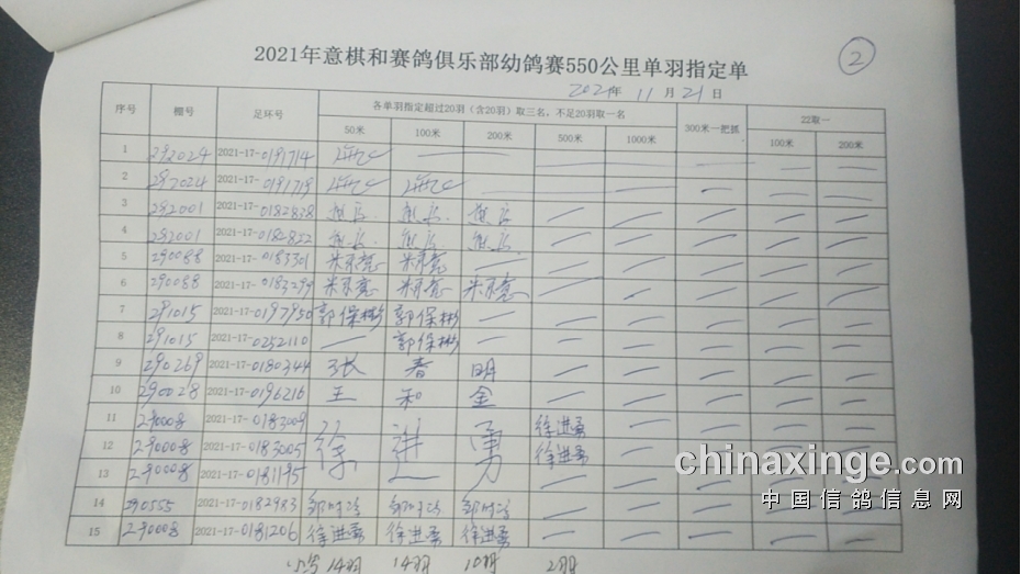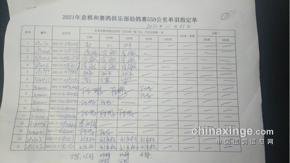 2021年11月21日550公里原阳幼鸽赛指定鸽清单