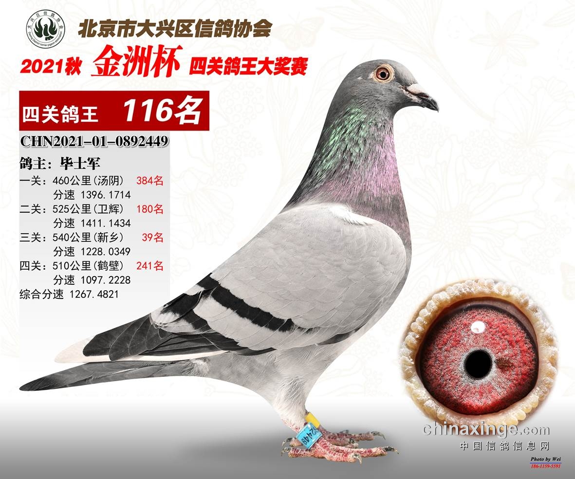 25年大兴“金洲杯”千元环一关有效归巢(按棚号)