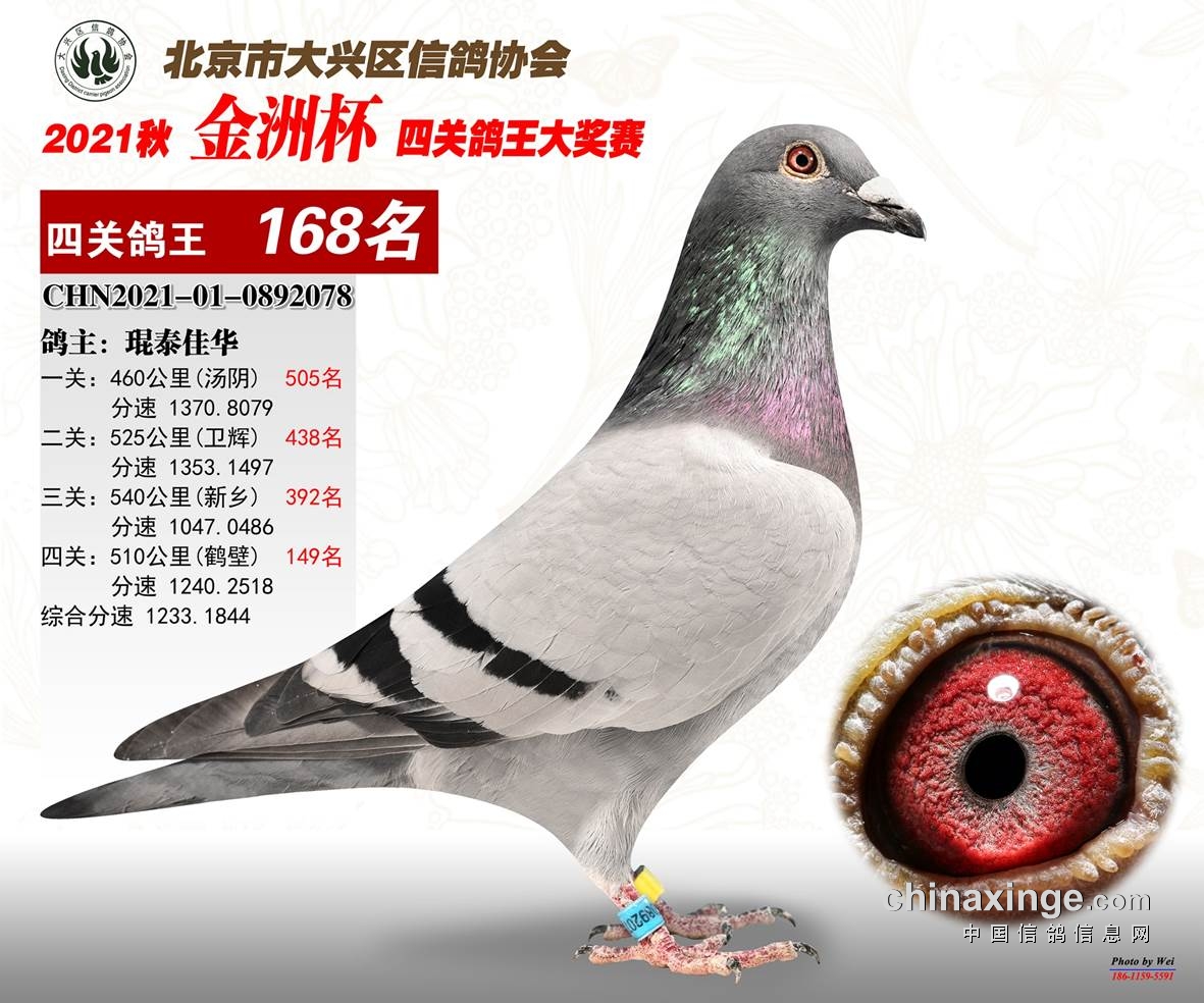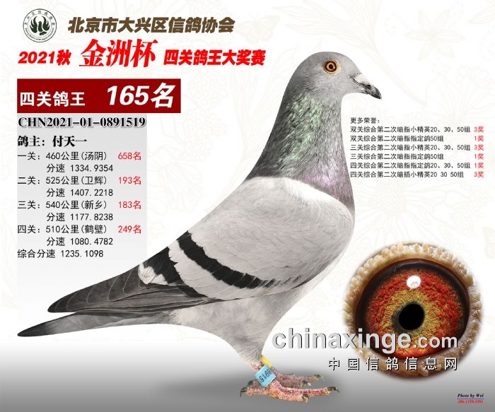 25年大兴“金洲杯”千元环一关有效归巢(按棚号)