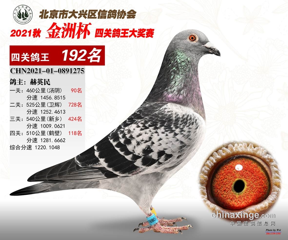 25年大兴“金洲杯”千元环一关有效归巢(按棚号)