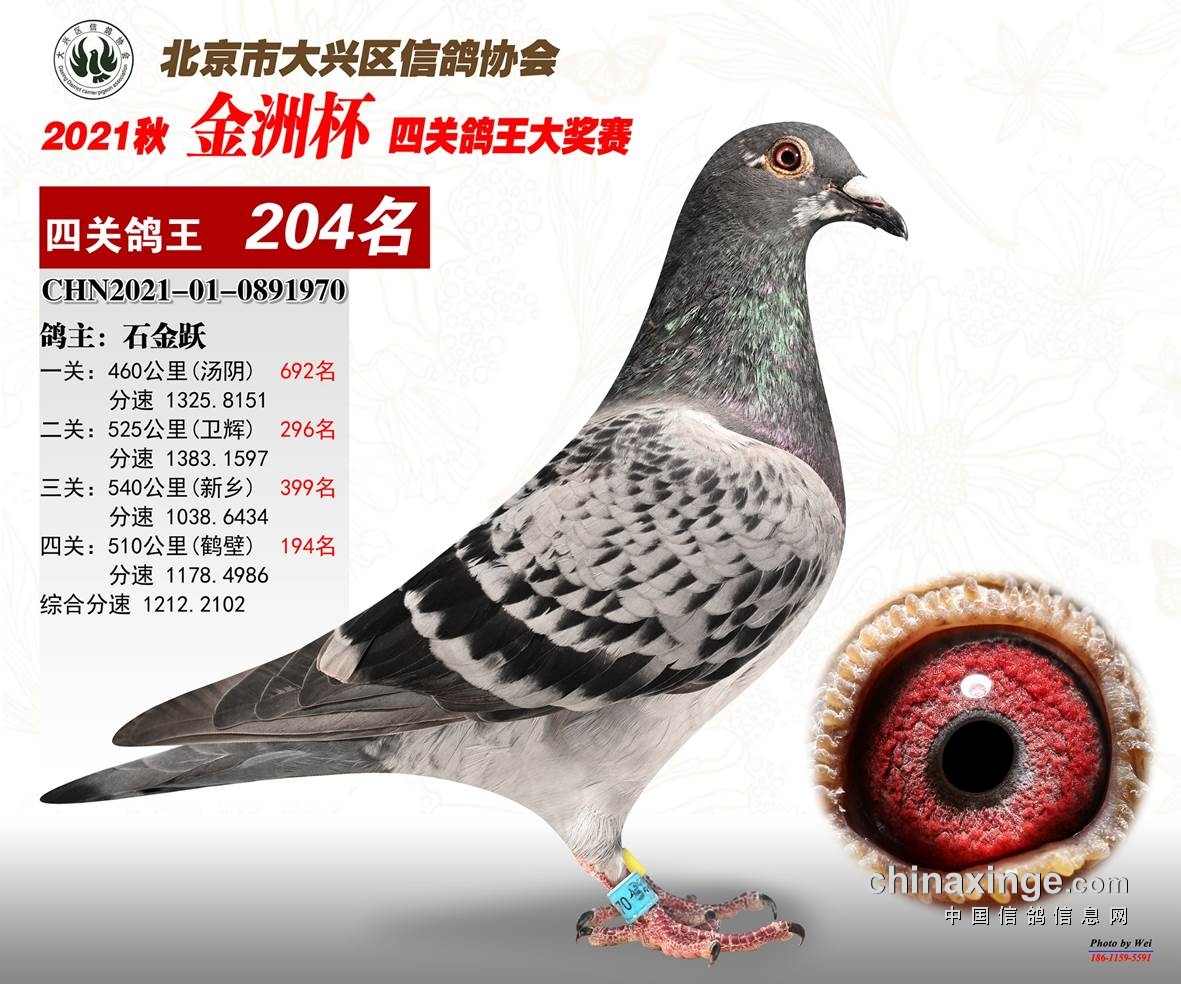 25年大兴“金洲杯”千元环一关有效归巢(按棚号)