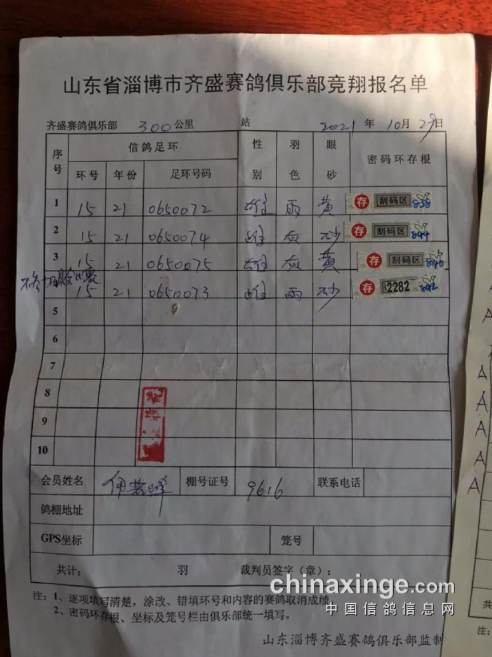 本次比赛天之翼共计2羽鸽子不抢县会特比环奖金,300公里上笼前在竟翔单已经标注,并封存,验鸽当日,和验鸽鸽友共同打开竟翔单。  |