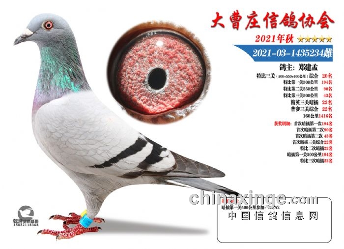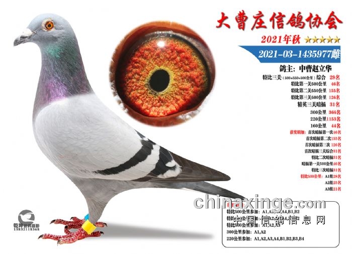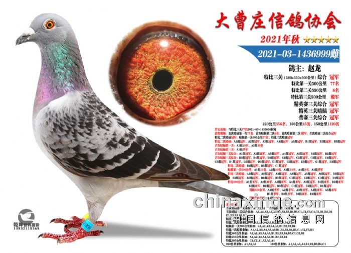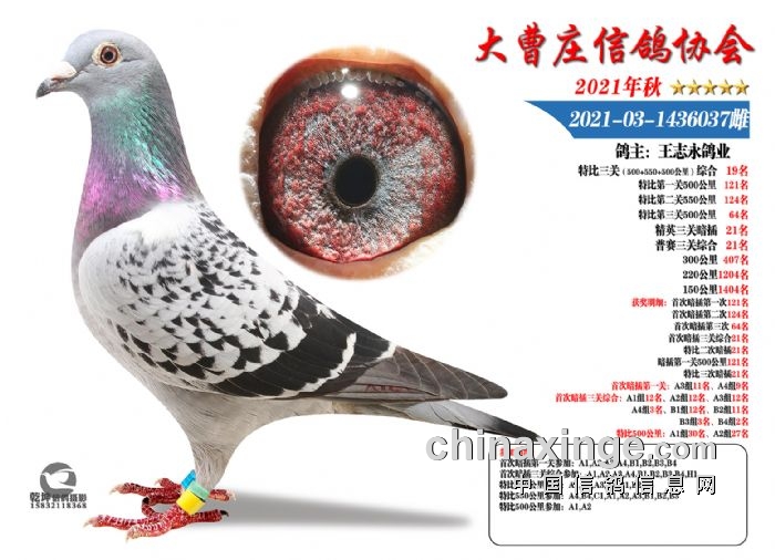 大曹庄鸽会2021年秋季特比三关鸽王获奖鸽照片1-30名欣赏