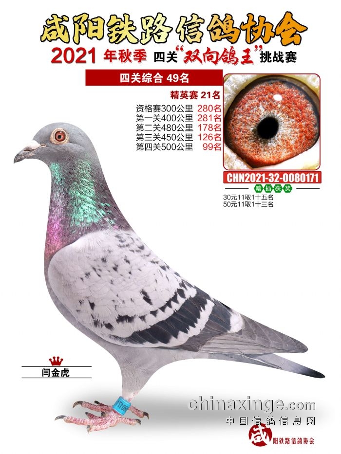 咸阳铁路信鸽协会2021年秋季双线四关鸽王46-50名