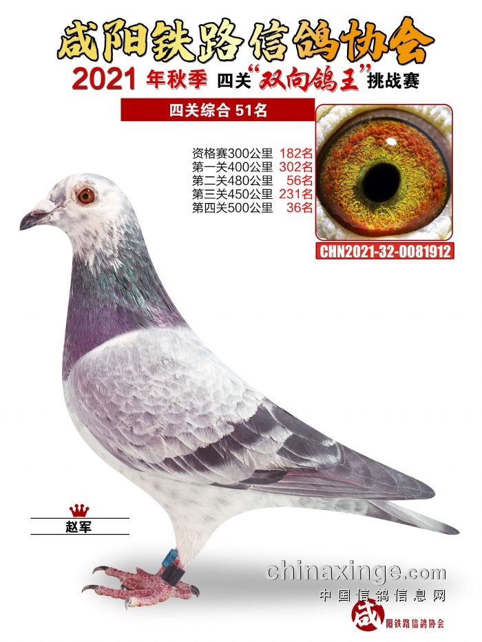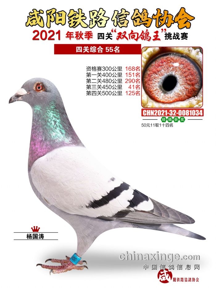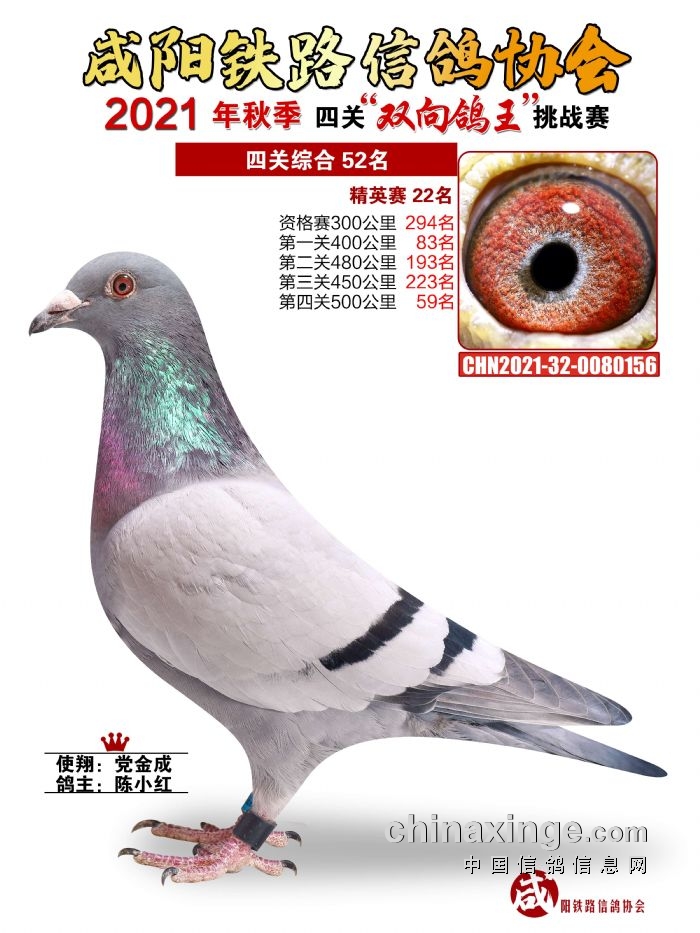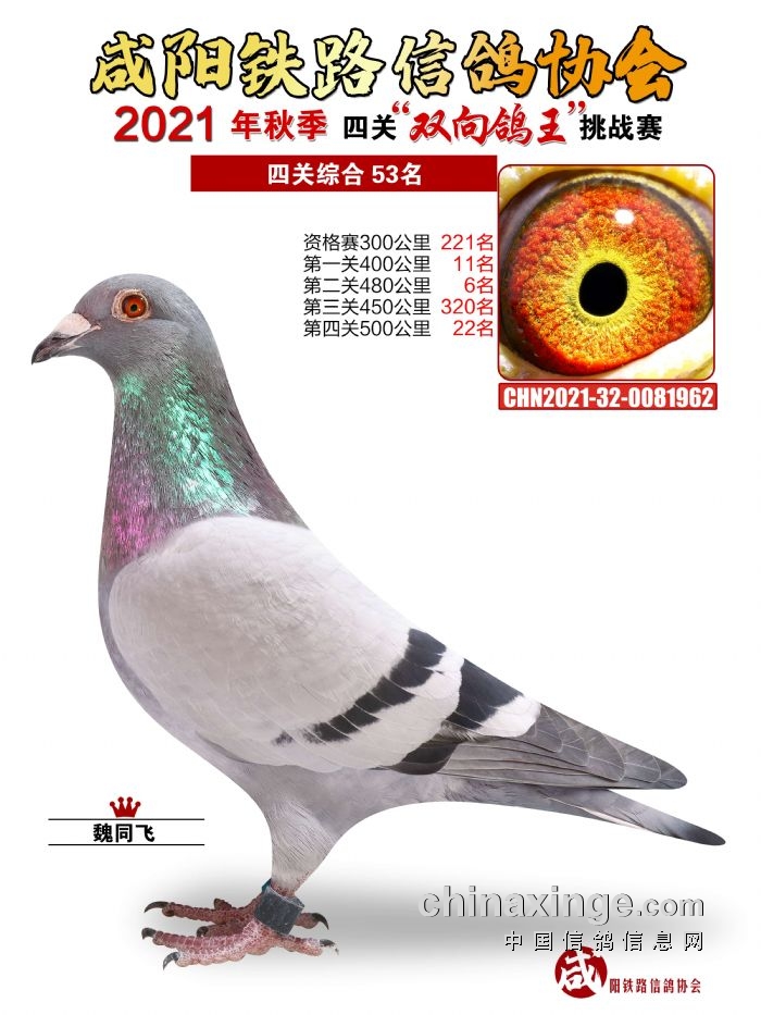 咸阳铁路信鸽协会2021年秋季双线四关鸽王51-55名