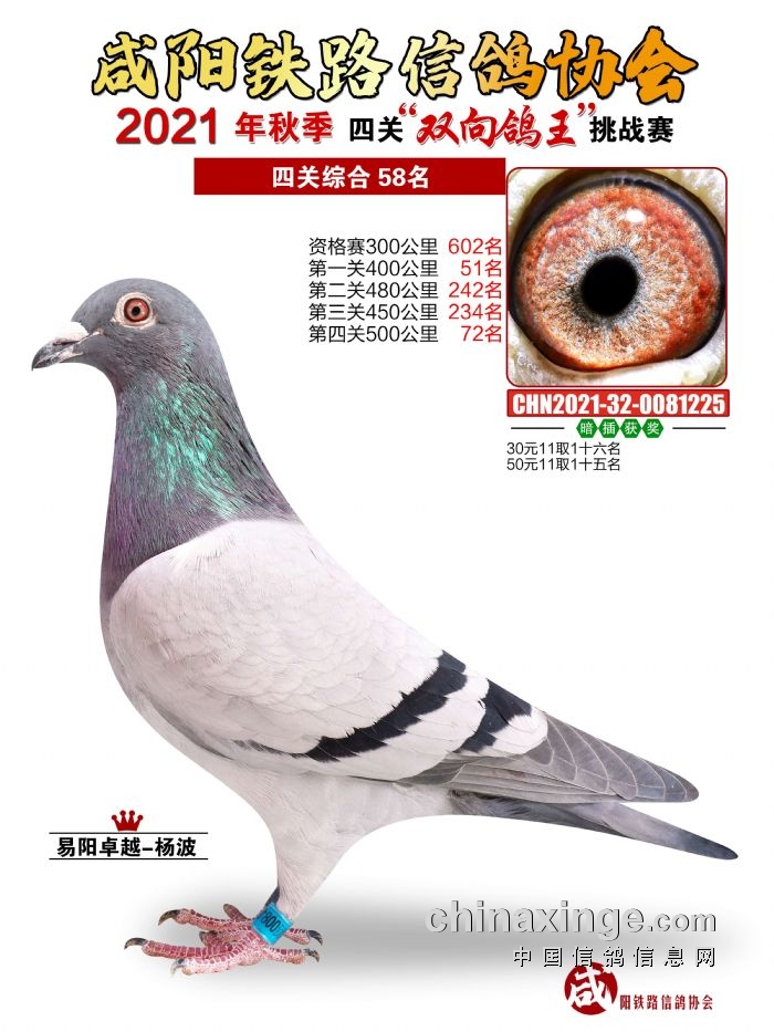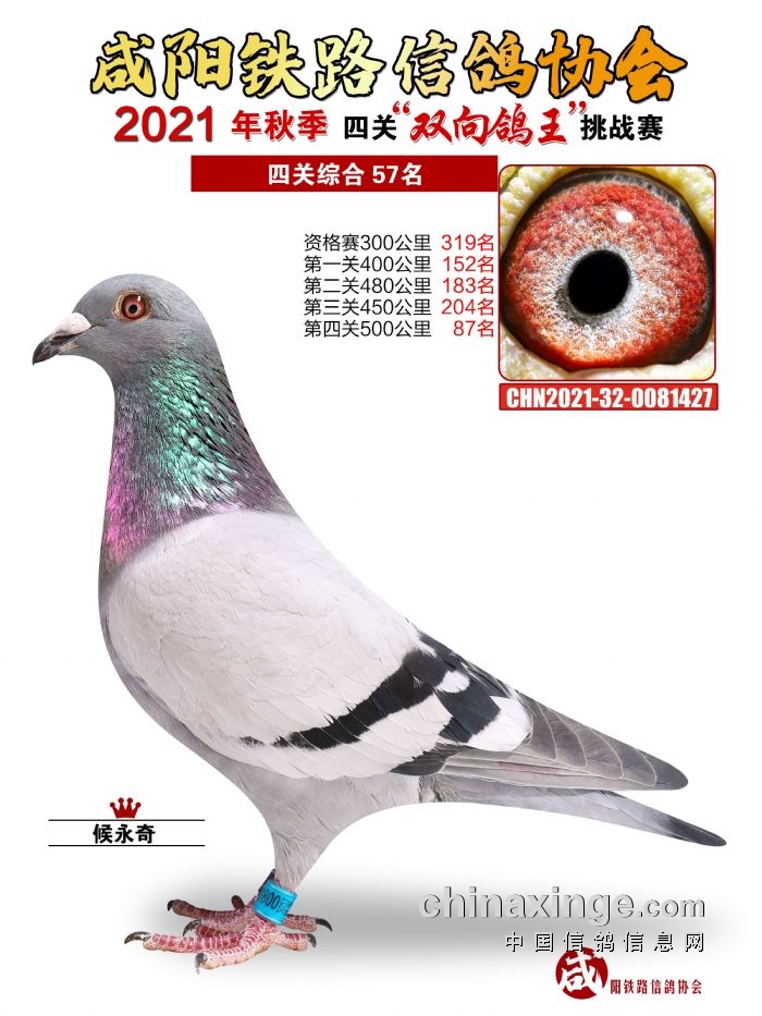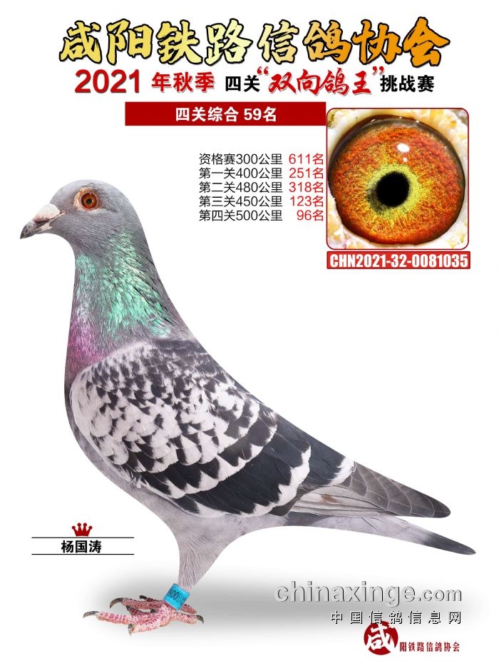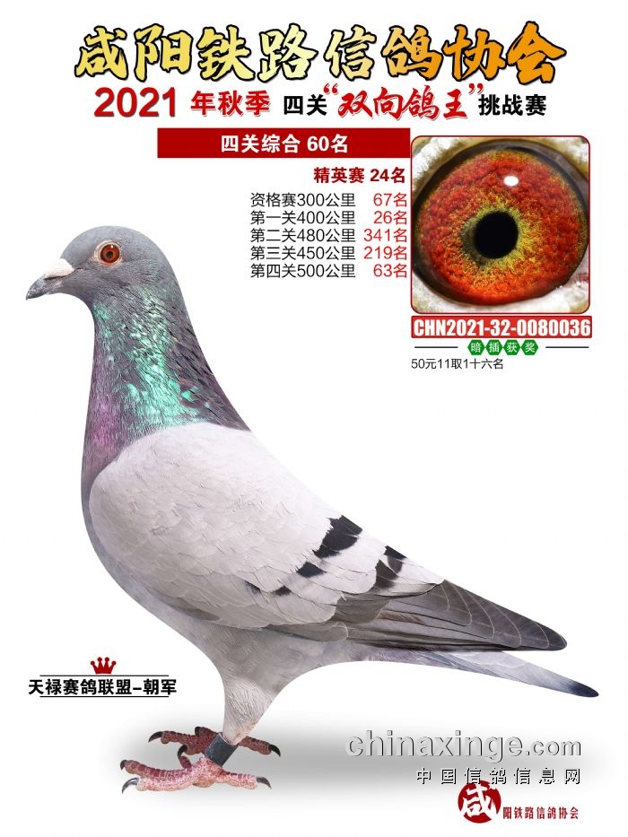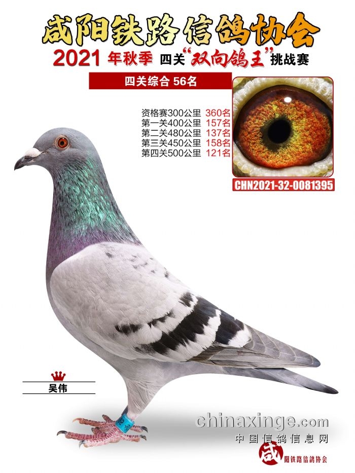 咸阳铁路信鸽协会2021年秋季双线四关鸽王56-60名