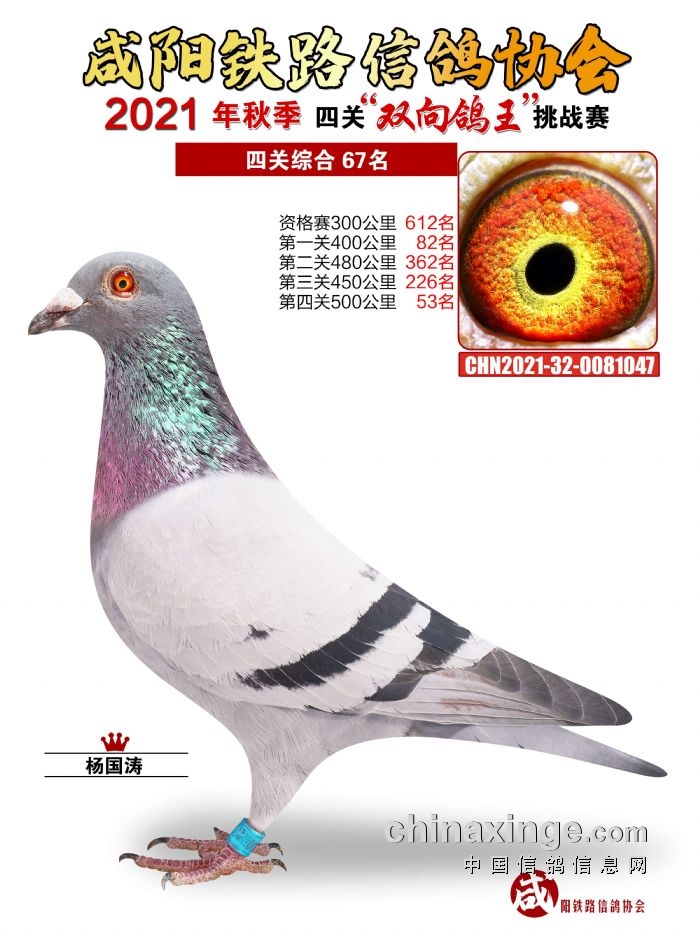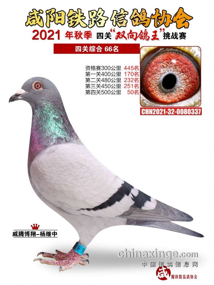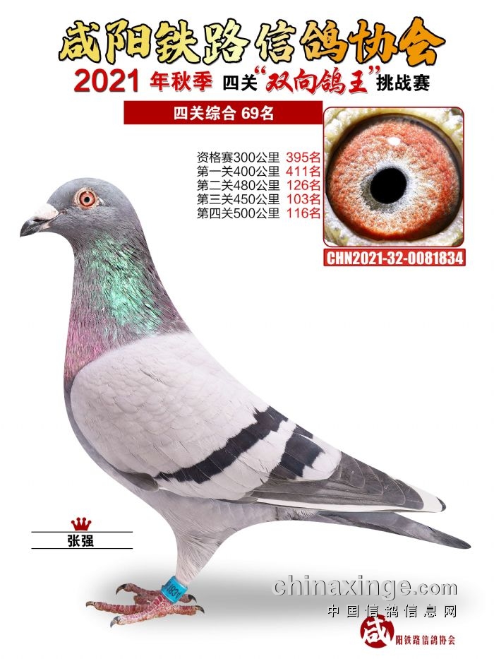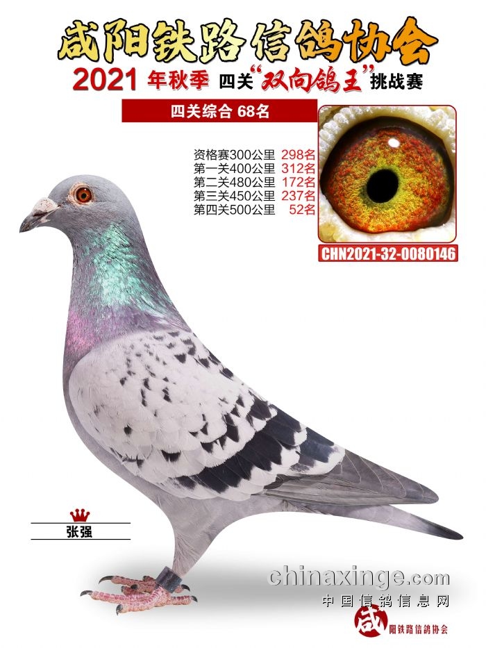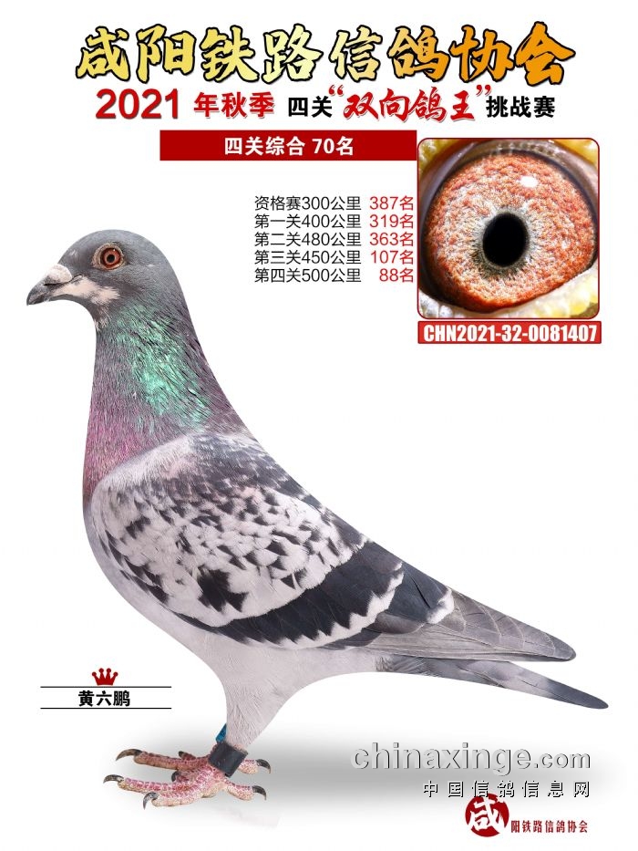 咸阳铁路信鸽协会2021年秋季双线四关鸽王66-70名