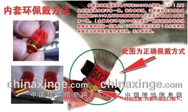 (二)参赛鸽必须佩戴本赛事专供号段比赛正式足环、防伪内套环(内套环卷边在下)和配发的封闭式电子足环。
