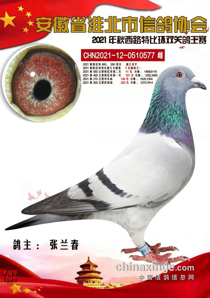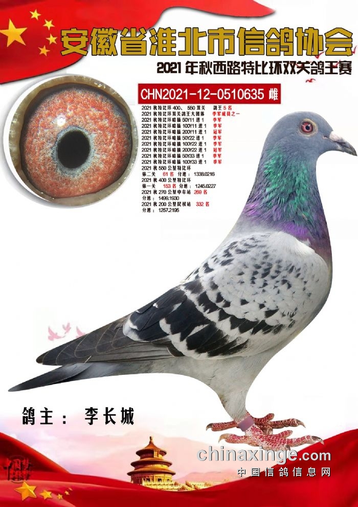 淮北市信鸽协会2021秋特比环优胜鸽141-145名