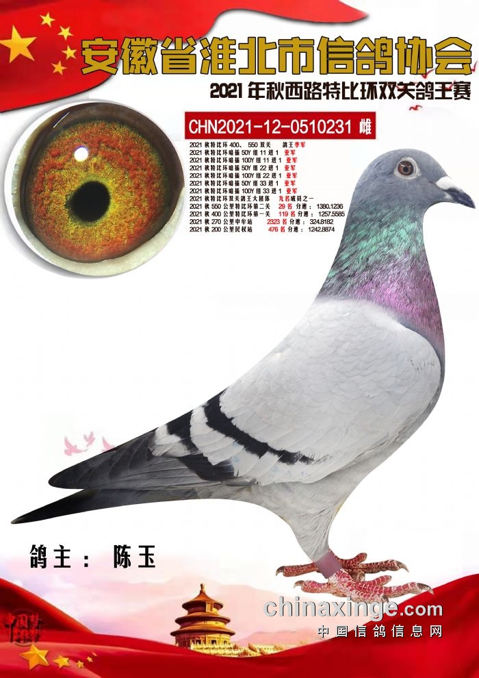 淮北市信鸽协会2021秋特比环优胜鸽1-5名