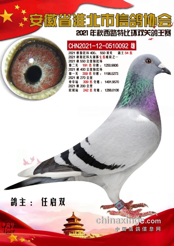 淮北市信鸽协会2021秋特比环优胜鸽51-55名