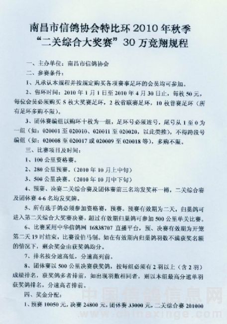 4、本规程解释权属南昌市信鸽协会,未尽事宜,另行通知。