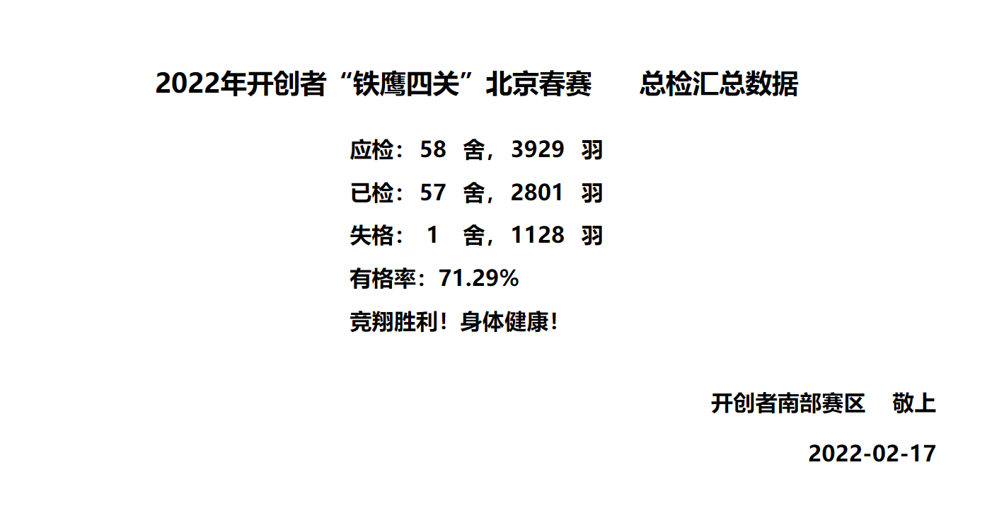 2022年开创者国际赛鸽俱乐部北京春赛千元特比总检汇总