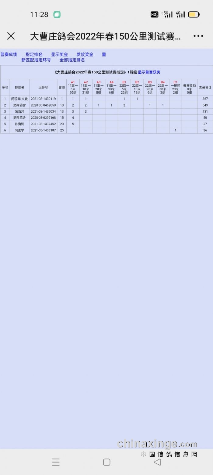 大曹庄鸽会25年秋220、280、340、380、500公里五关鸽王临时成绩