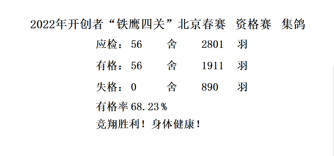 2022年大兴鸽会开创者“铁鹰四关”北京春赛集鸽1911羽