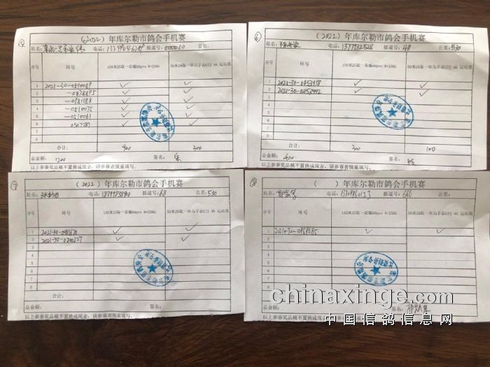 2022年春季第三关500公里指定鸽(手机)明细