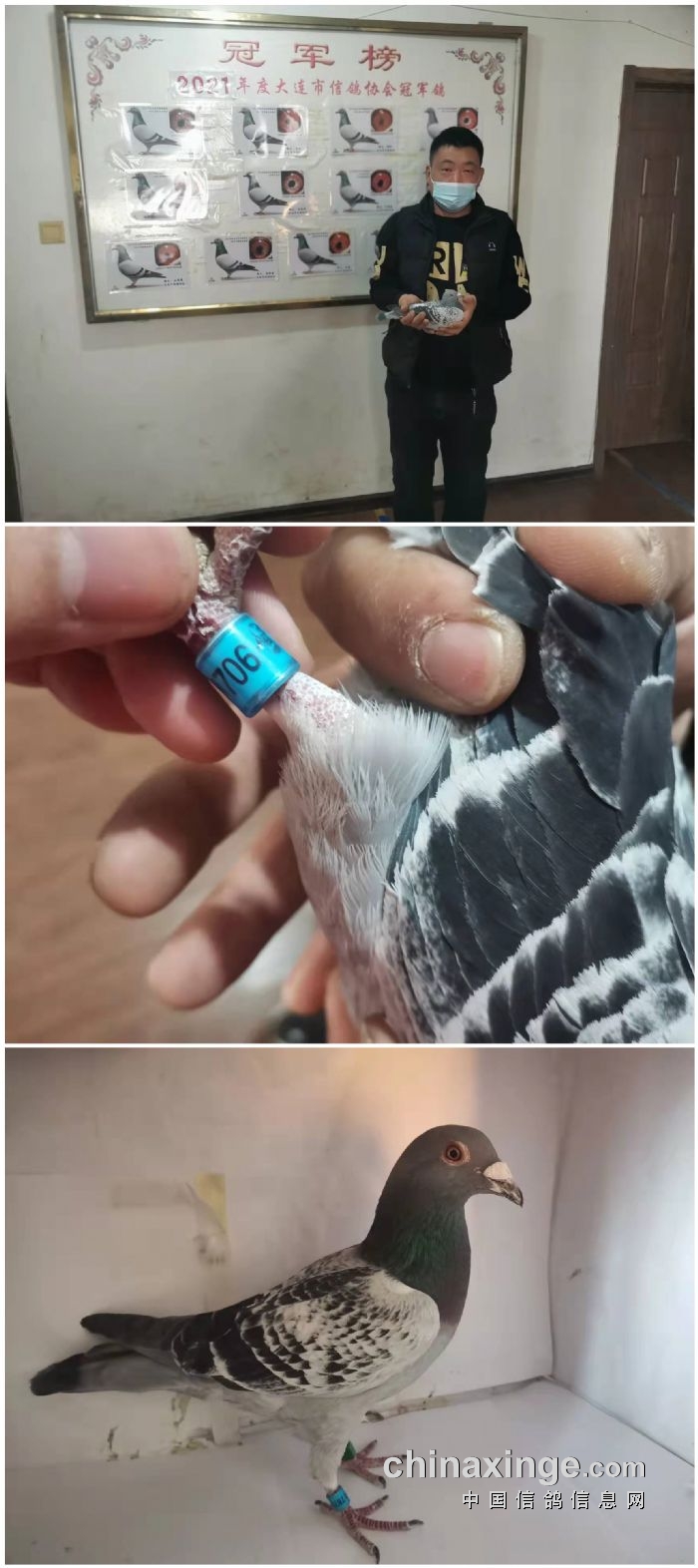 冠军 棚号:1111李杰 21-06-0170994 雄 黄 灰 飞速(米/分): 1270.1472