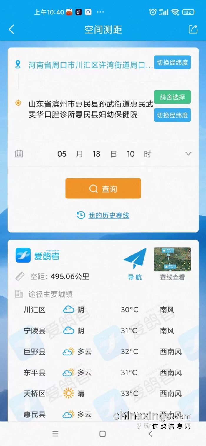 根据最新中央天气预报,惠民县信鸽协会2022年春第二关