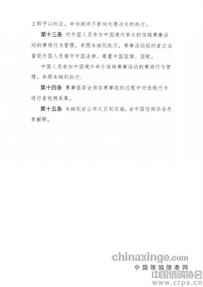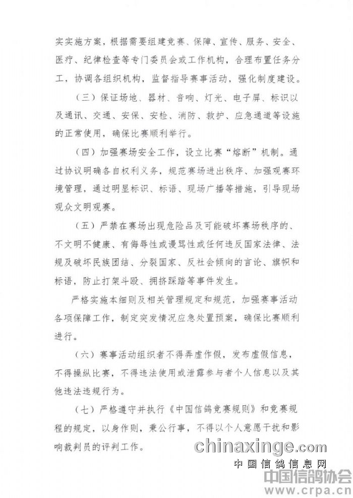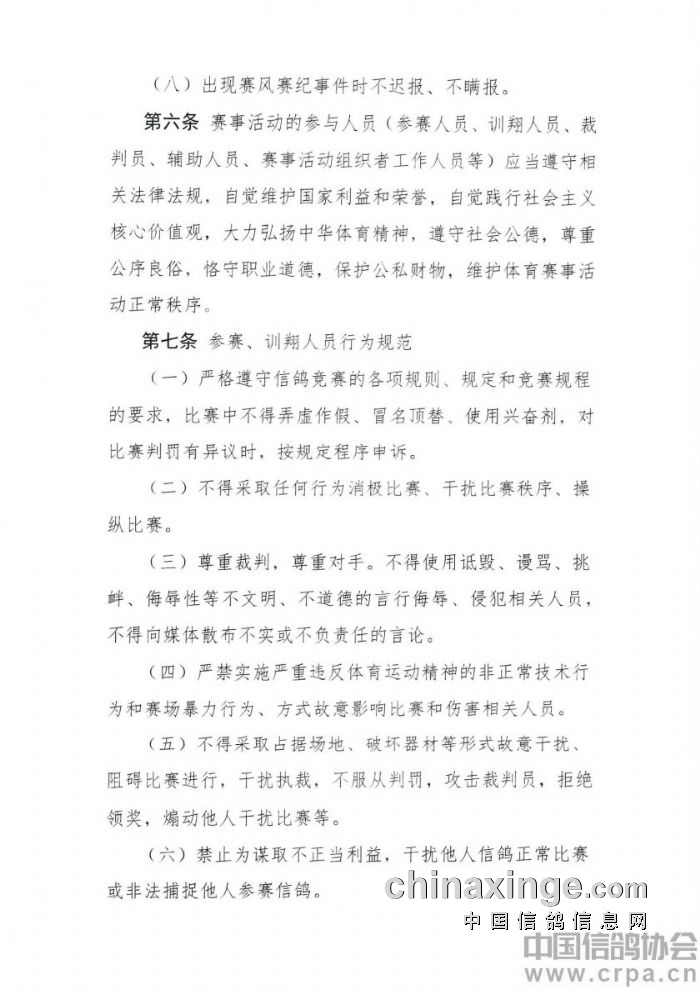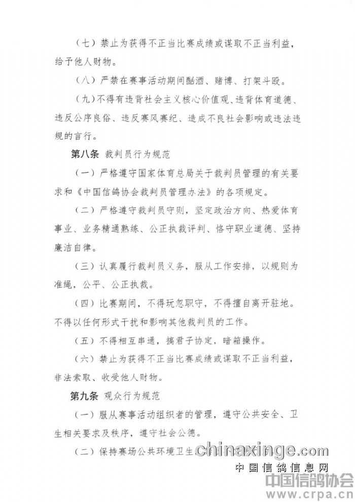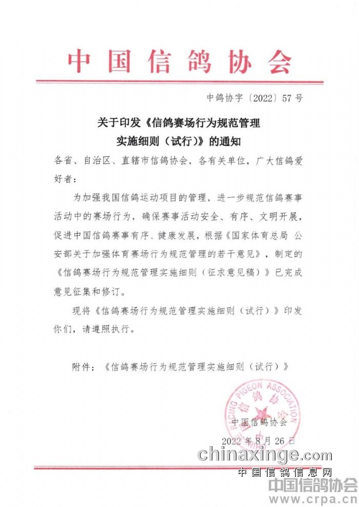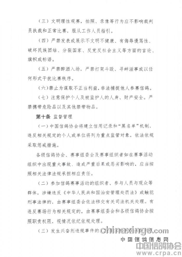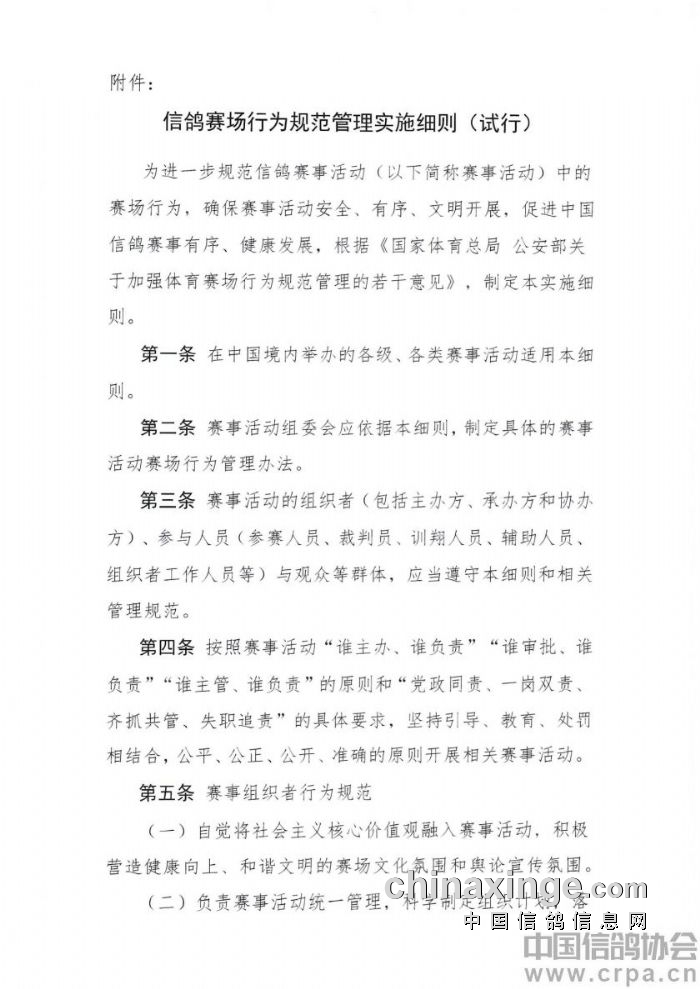 转发 关于印发《信鸽赛场行为规范管理实施细则(试行)》的通知
