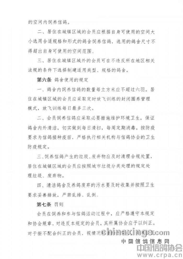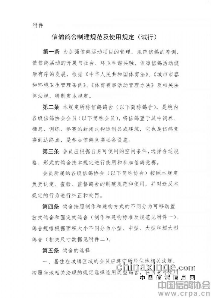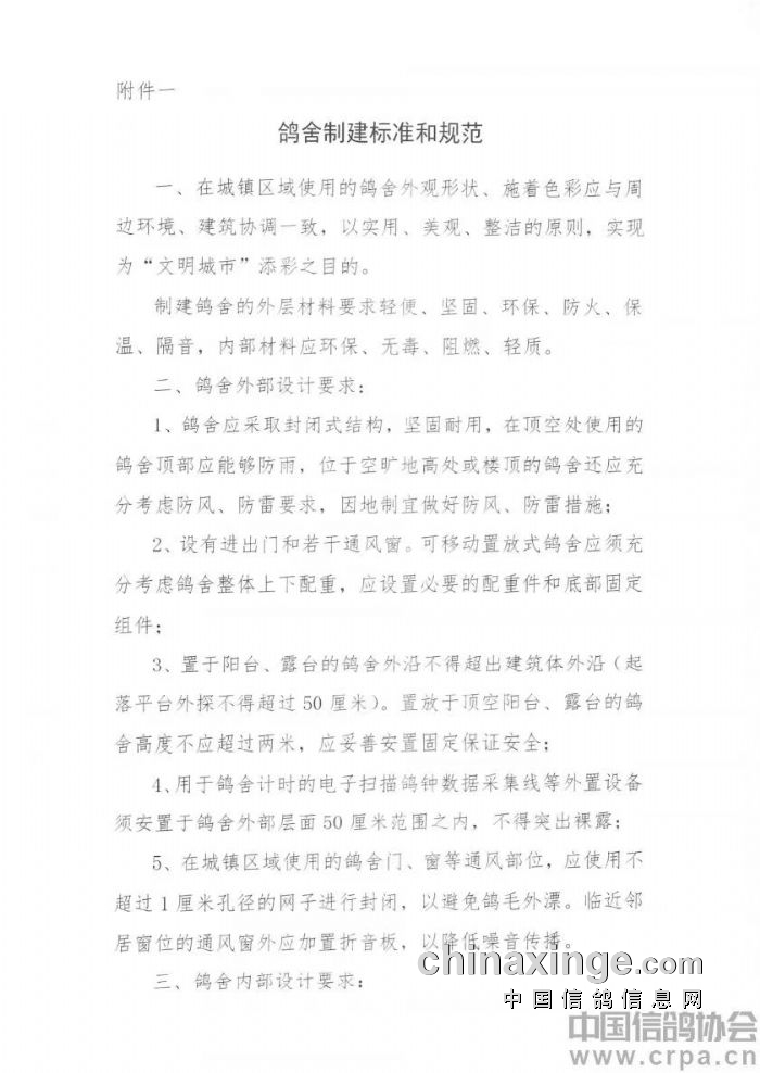 关于印发《信鸽鸽舍制建规范及使用规定(试行)》的通知